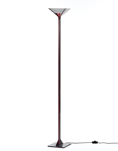 Lampada da terra modello "Papillona". Produzione Flos, Milano, 1975. Alluminio pressofuso verniciato nero e rosso. (h cm 192)