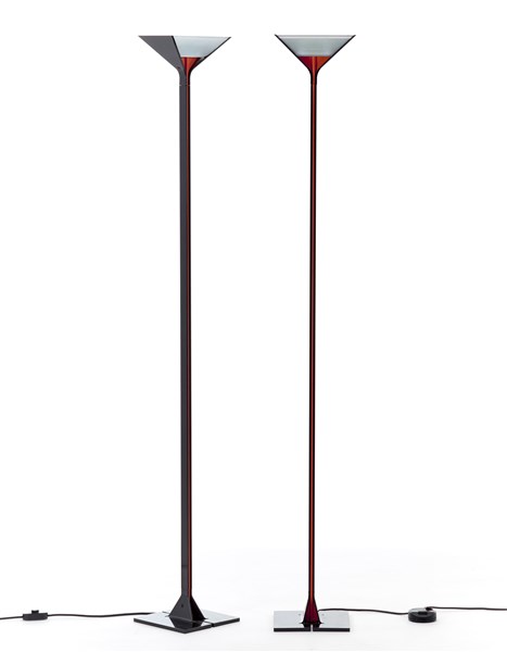 Lotto composto da due lampade da terra modello "Papillona". Produzione Flos, Milano, 1975. Alluminio pressofuso nero. (h cm 190)