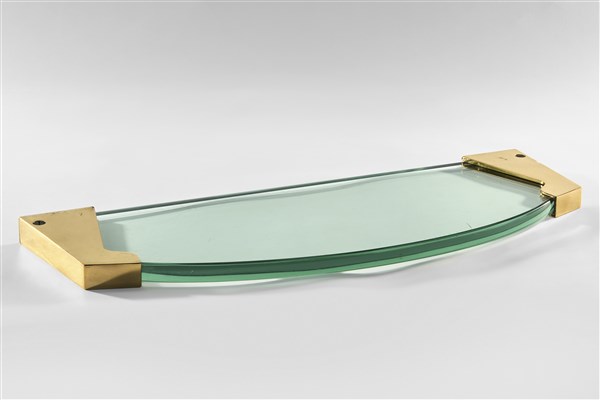 Mensola modello "2034". Milano, anni '50. Cristallo molato con supporti in ottone. (cm 62x3x23)