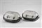 Gruppo di due lampade da terra modello "Noce". Produzione Flos, Milano, 1972. Alluminio verniciato bianco, coperchio in vetro stampato. Marcato sotto la base. (cm 36,5x20x26)