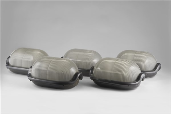 Achille Castiglioni Gruppo di cinque lampade da parete modello "Noce". Produzion