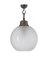Lampada a sospensione modello "LS10 Boccia". Produzione Azucena, Milano, 1967. Portalampada in alluminio grigio metallizzato, doppio gancio in ferro brunito e paralume a globo in cristallo di Murano soffiato incolore. (boccia: h cm 34; d cm 39) (lievi difetti)