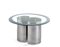 High table model "Fascia specchiata". Produced by Azucena, Milan, 1970s. Oval crystal glass top with mirrored perimeter band, two "C" shaped metal supports. (h 71 cm.; d 140 cm.) (slight defects and small shortcomings)
