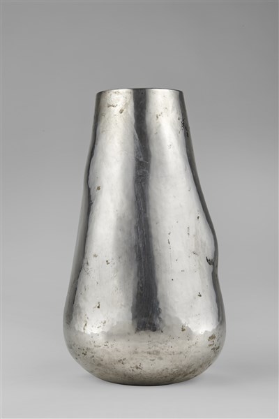 Vaso in argento martellato, titolo 800. Milano, anni '30/'40. (g 850) (h cm 25,5; d cm 13,5)