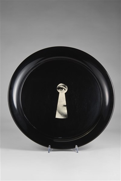 Fornasetti Vassoio. Milano, 2005. Serigrafia su metallo smaltato nero. Esemplare
