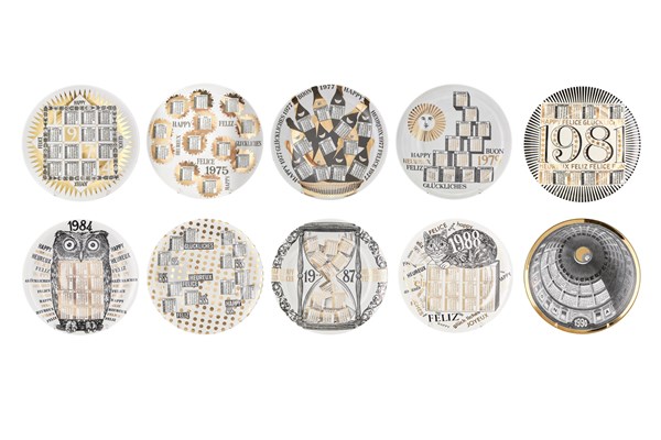 Piero Fornasetti Dieci piatti della serie "Calendario". Milano, anni '80. Porcel