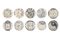 Dieci piatti della serie "Calendario". Milano, anni '80. Porcellana serigrafata in nero e oro. Marcati al verso. (d cm 24) (lievi difetti)