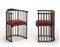 Coppia di poltroncine a pozzetto. Austria, 1906ca. Legno di faggio curvato al vapore verniciato, seduta rivestita in tessuto damascato rosso. Marcate a fuoco. (cm 56x79x50) (lievi difetti e restauri)