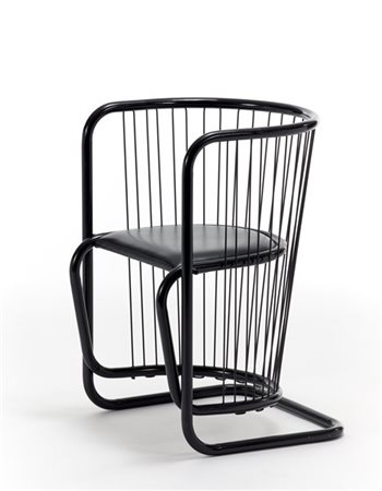 Sedia modello "Lira". Produzione Zanotta, Nova Milanese, anni '50. Metallo verniciato nero e corda di gomma nera. (cm 50,5x72x48) (lievi difetti)