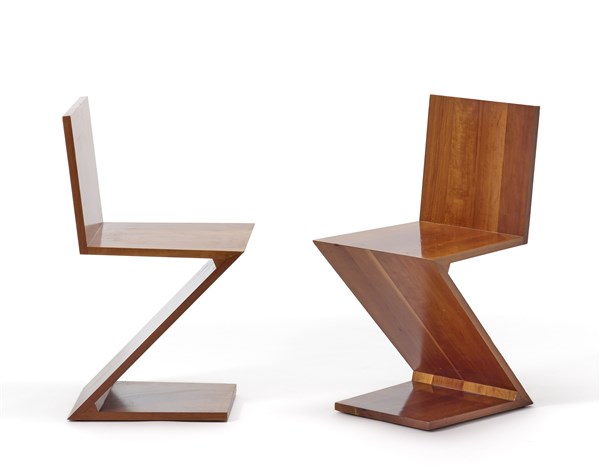GERRIT THOMAS RIETVELD Coppia di sedie modello "Zig Zag". Produzione Cassina, Me