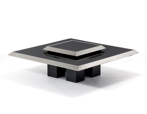 Lotto 383 | Willy Rizzo Tavolino da salotto. Produzione Cidue, Italia, anni '70. Metallo e l