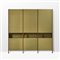 Bookcase. Execution by Radice, Milan, 1958ca. solid mahogany and veneered wood, green fabric-covered panel. (229x229x30 cm.) (defects)