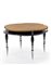 Tavolo circolare. Produzione Scarabas, Repubblica Ceca, 1995ca. Doppio piano impiallacciato in ciliegio e acero tinto nero, gambe in metallo cromato e legno con finali sferici e troncoconici in alluminio. (h cm 78; d cm 122) (lievi difetti)