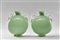 Coppia di vasi globulari biansati in vetro soffiato incamiciato color acquamarina con inclusioni di foglia d'oro. Murano, anni '30/'40. (h cm 32) (difetti)