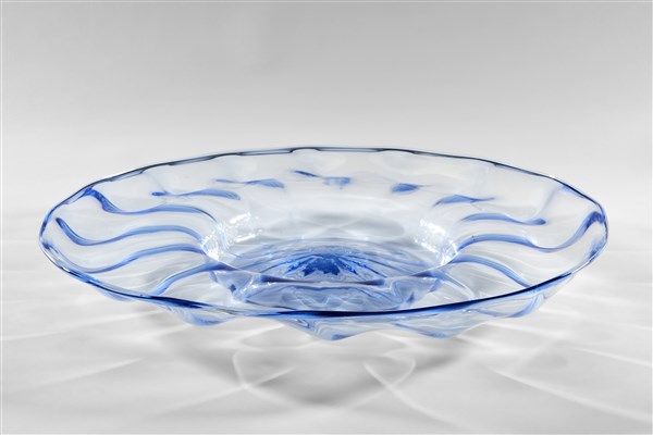 Manifattura di Murano Grande piatto in vetro soffiato costolato trasparente azzu
