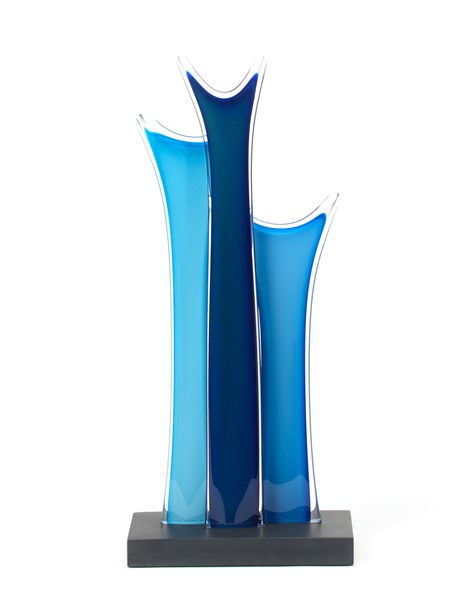 Sculpture of the series "Out of the Darkness I". 2000s. Colored blown glass on slate base. Signed. (h max 80 cm.)