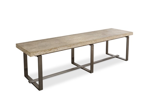 Grande tavolo su disegno. Torino, 1972. Struttura in acciaio inox, piano in travertino.