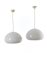 Coppia di lampade a sospensione modello "Black and White". Produzione Flos, Milano, 1965. Paralume in vetro soffiato lattimo e struttura in alluminio. (d cm 50) (lievi difetti)