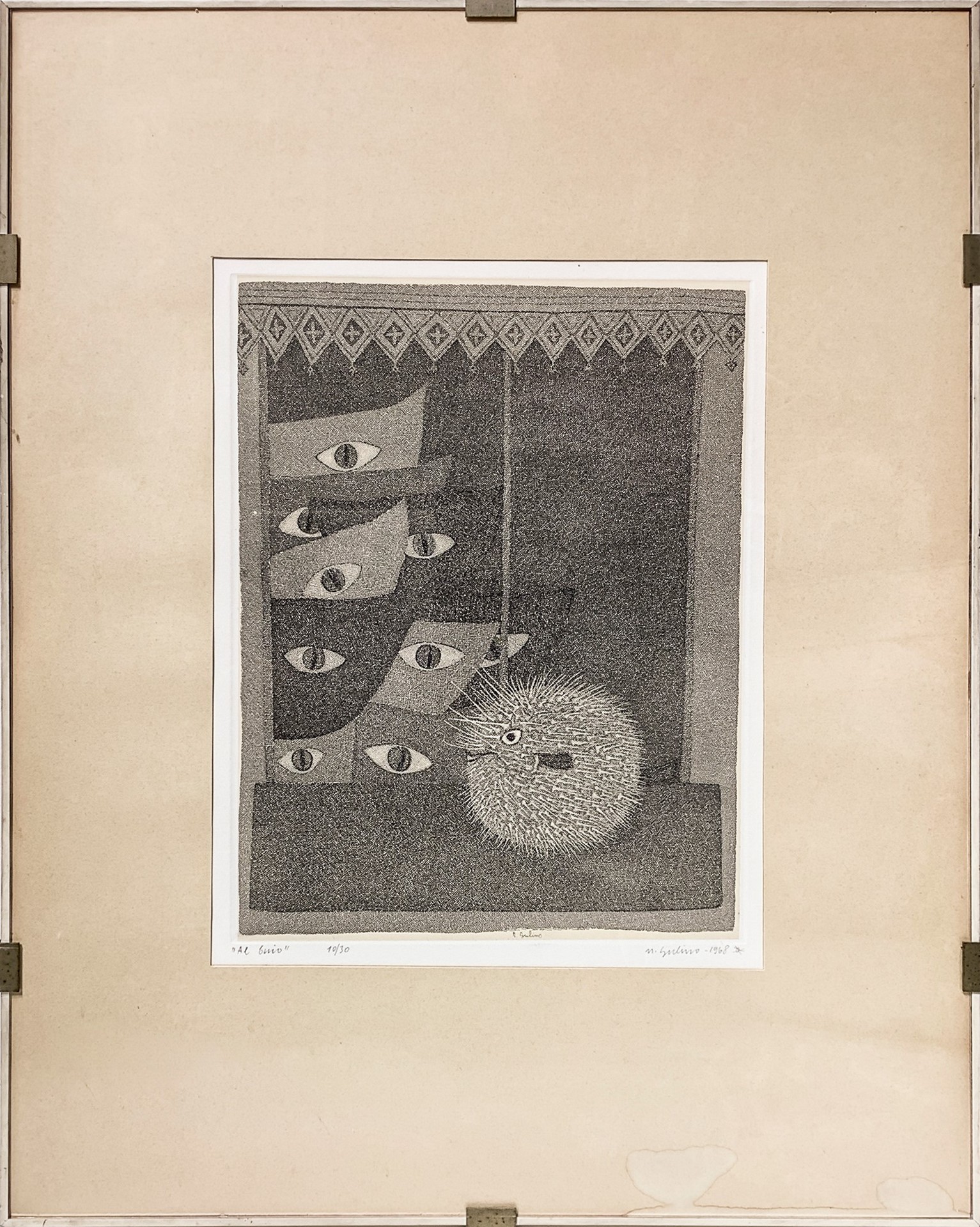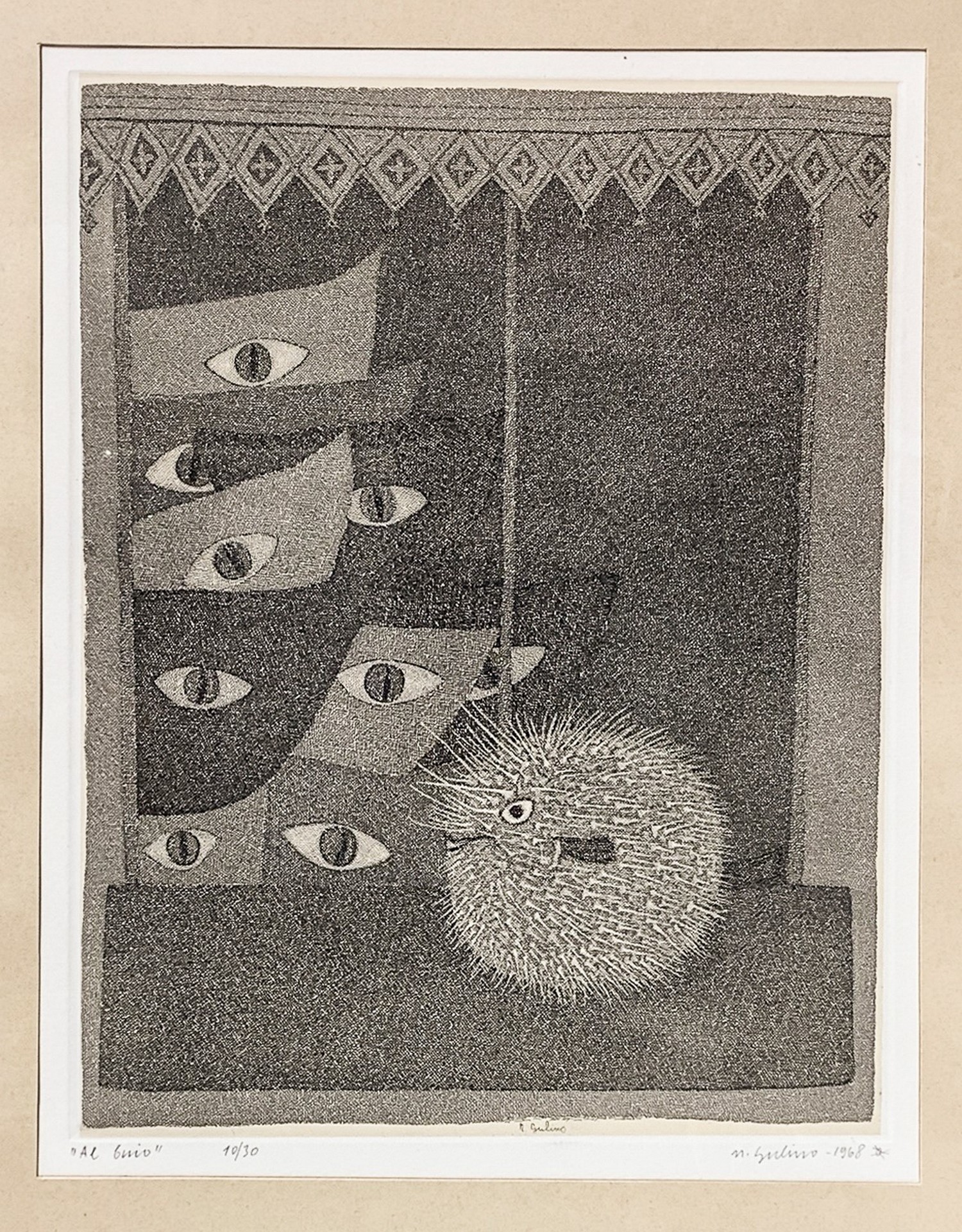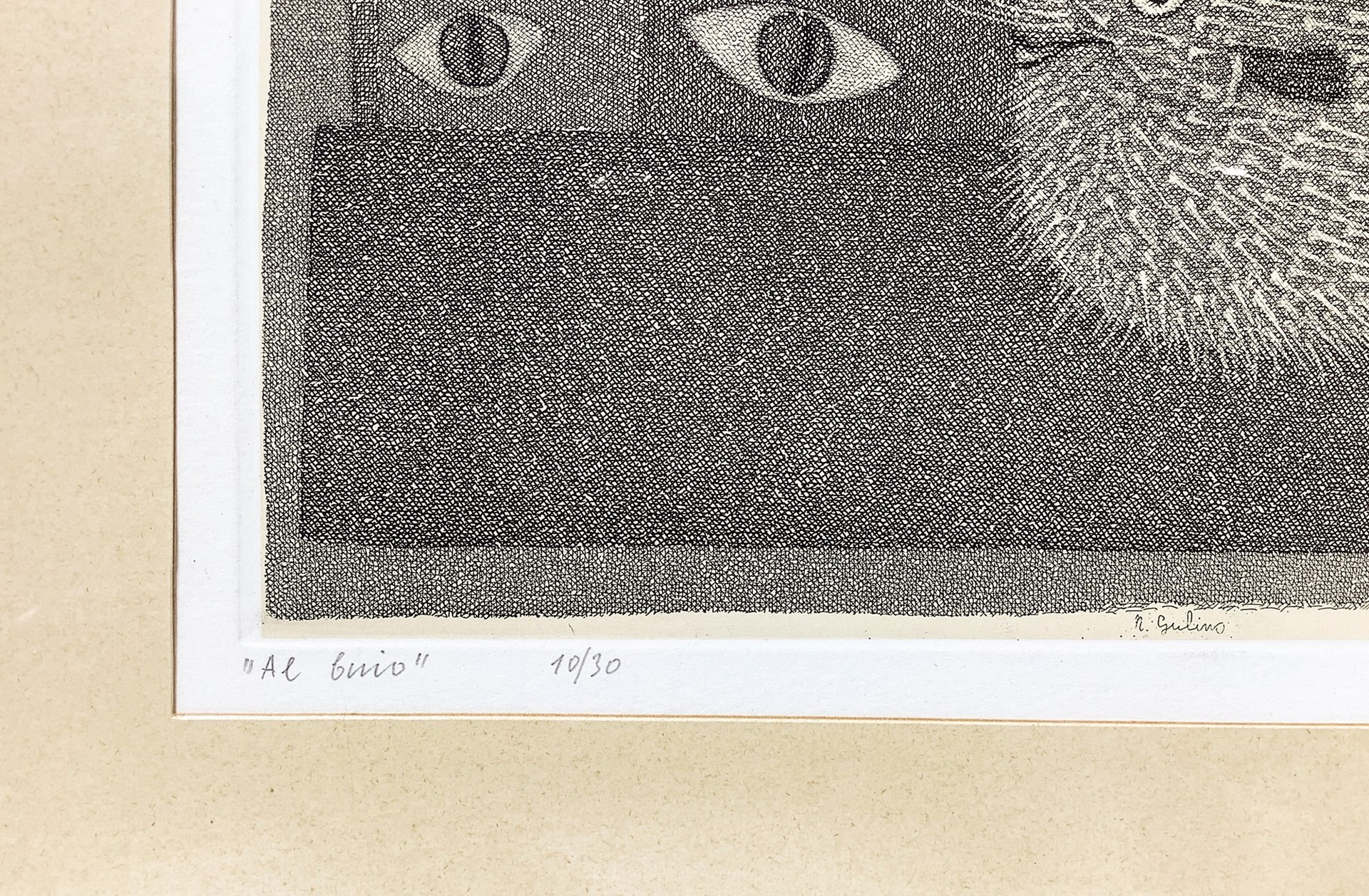 Nunzio Gulino (Comiso 1920-Roma 2011) - Al buio cm 31,5x14,5, in cornice 58x46 Incisione es. 10/30, firmata in basso a destra Nunzio Gulino 1968.