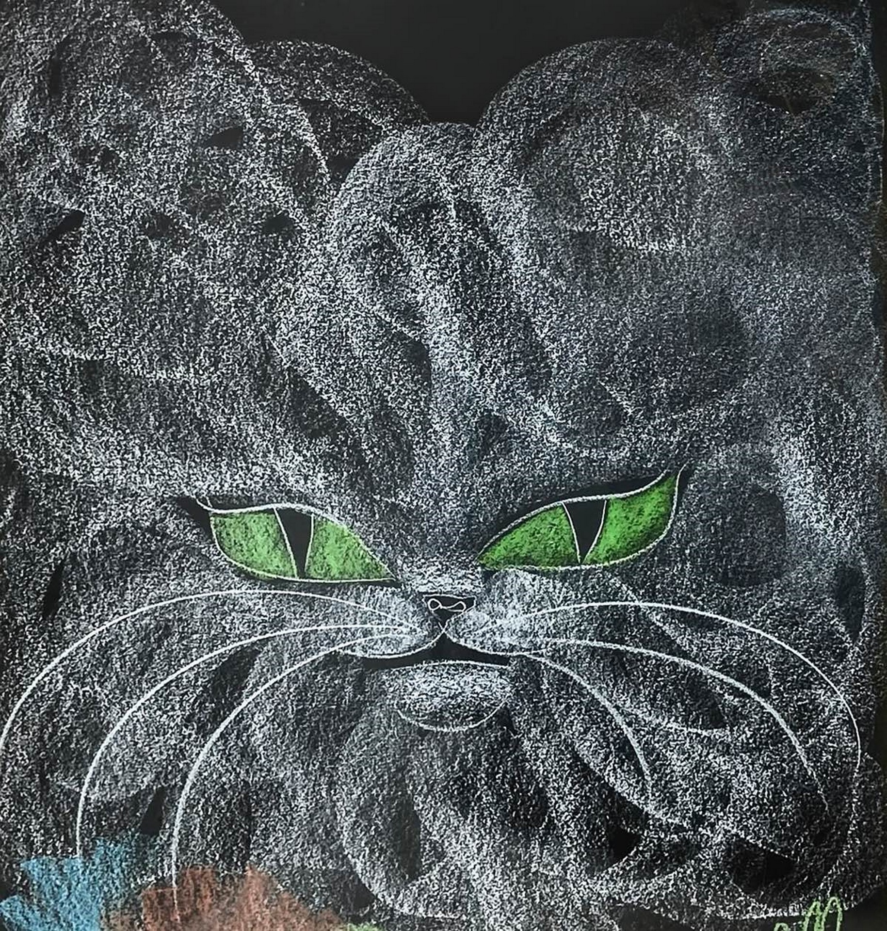 Novella Parigini (Chiusi 1921-Roma 1993) - Gatto con fiori cm 68x48 , in cornice 84x64 pastello su carta Firmato in basso a destra.