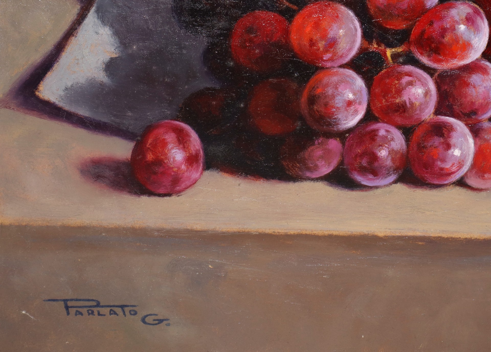 Giovanni Parlato (Vico Equense 1957) - Frutti cm 52x70, opera sprovvista di cornice Olio su faesite Firmato in basso a sinistra