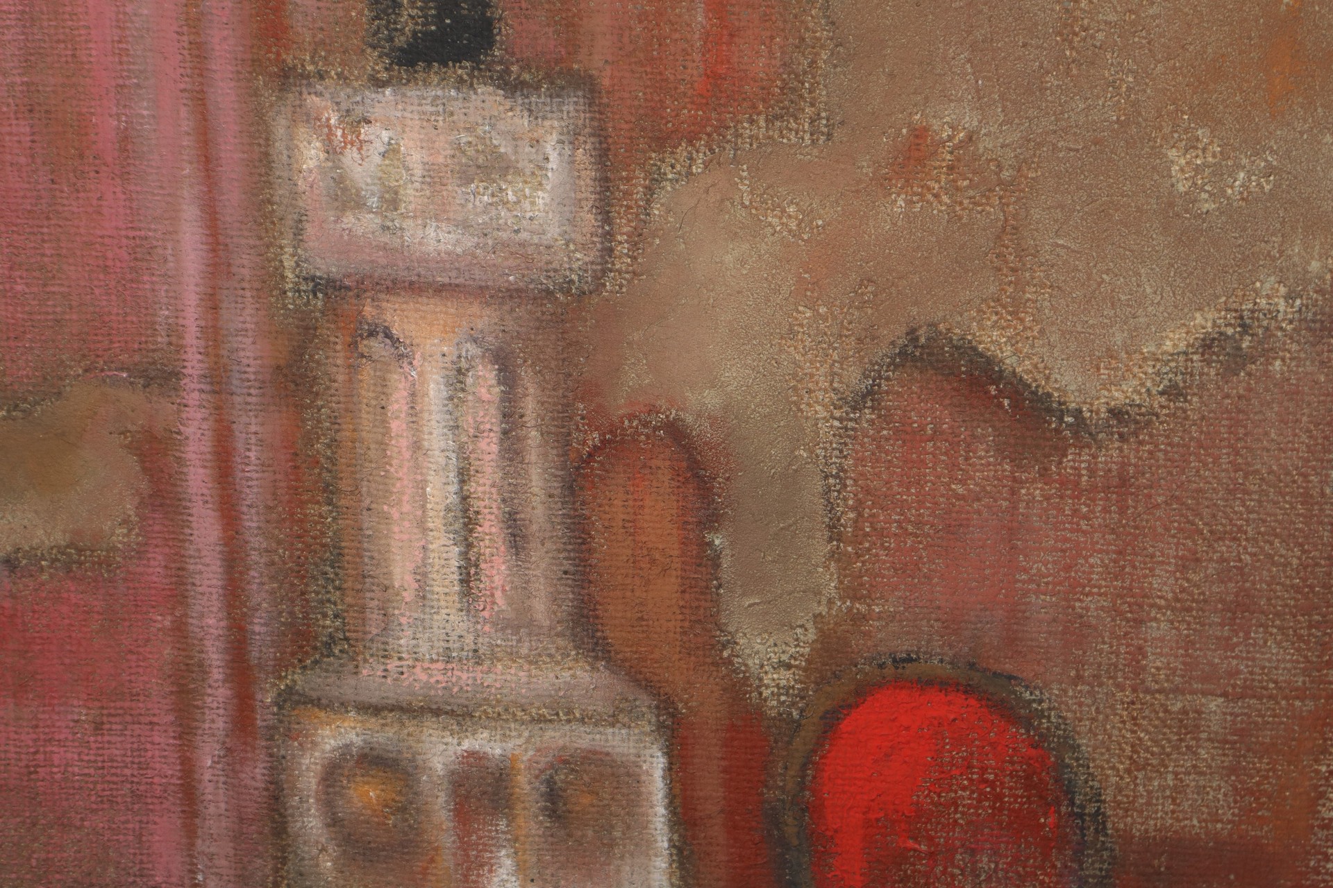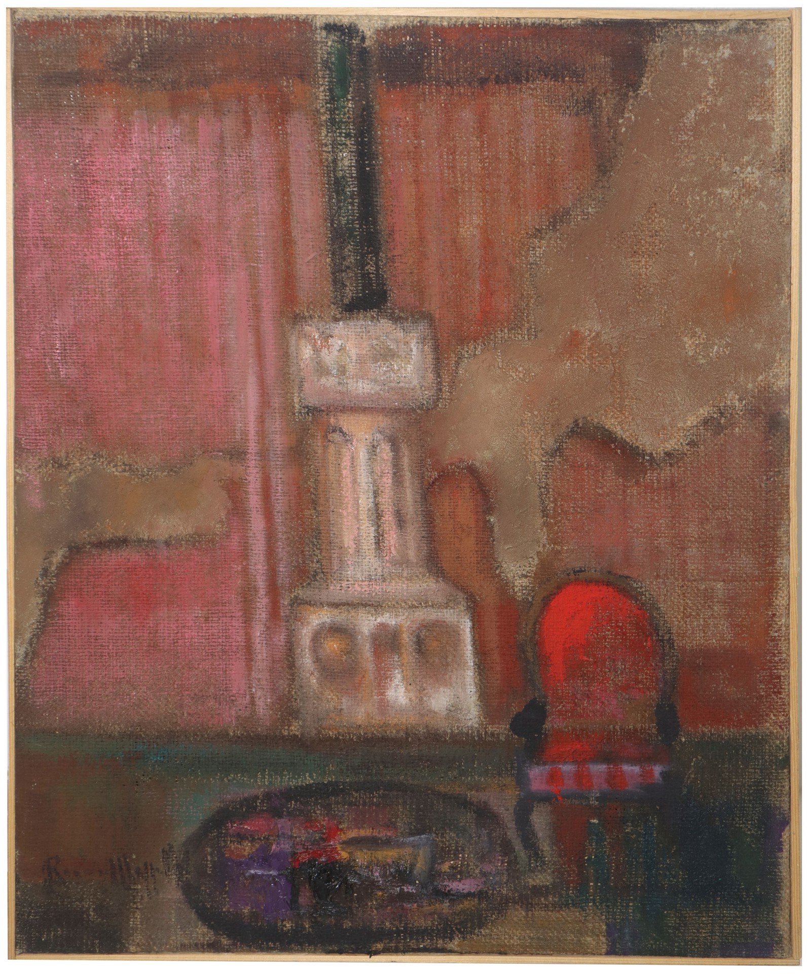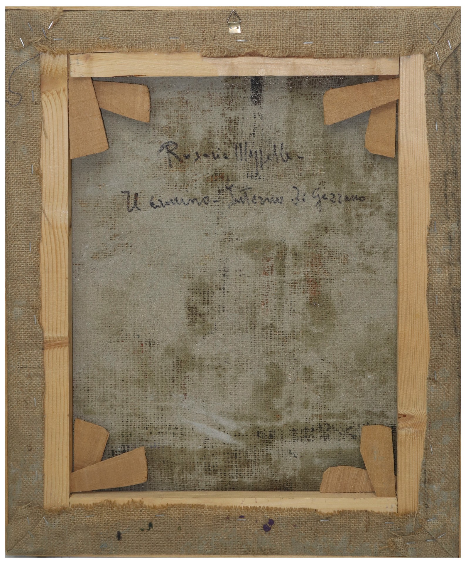 Rosario Mazzella (Napoli 1932-2021) - Il camino-interno di Gezzano cm 60 x 50 Tecnica mista su tela di iuta