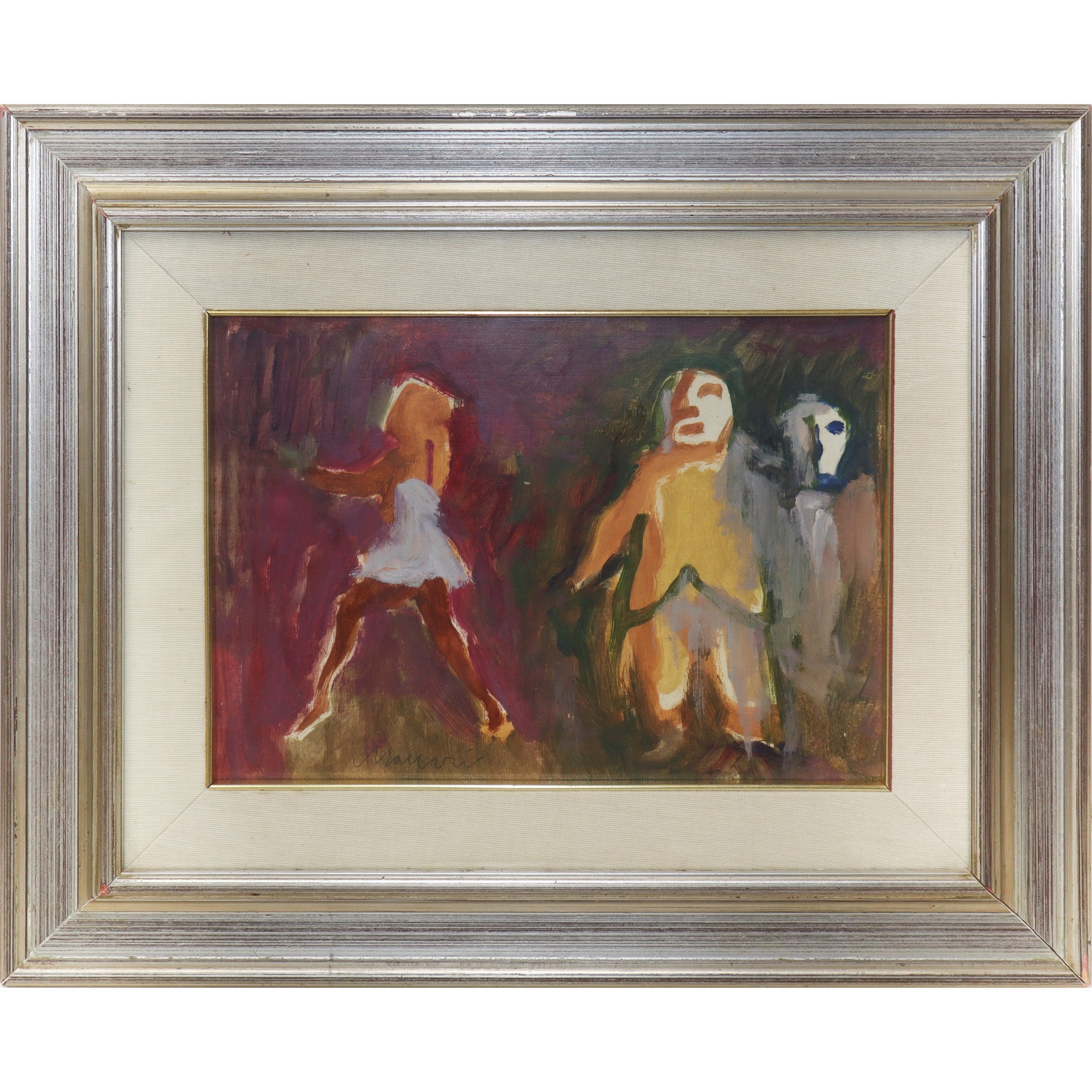 Mino Maccari (Siena 1898-Roma 1989) - Personaggi, 80s cm 34 x 24, in cornice 47 x 54 Tecnica mista su cartoncino Firmato in basso a sinistra. Autentica su foto Archivio Generale Del Maestro Mino Maccari, n° repertorio 4903.