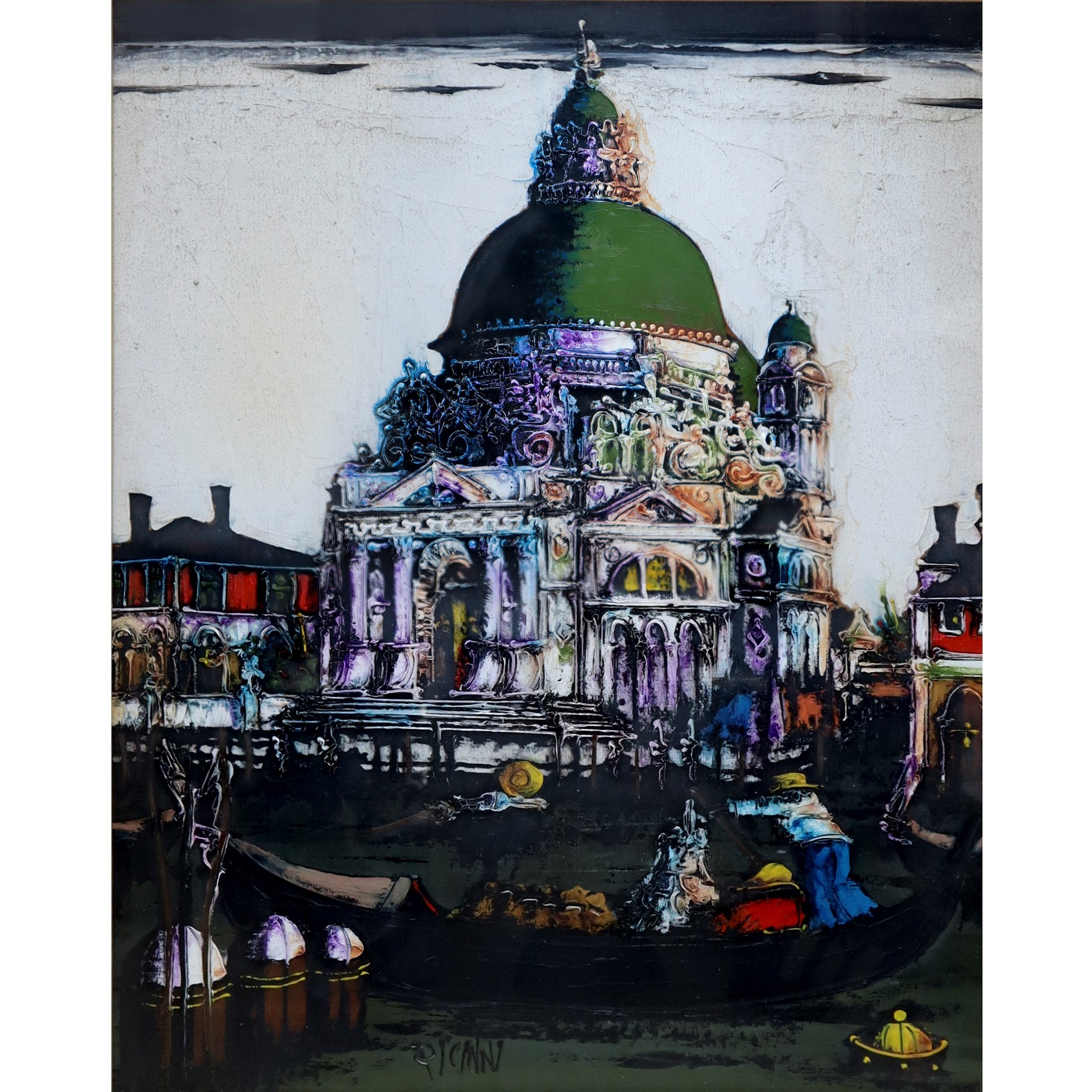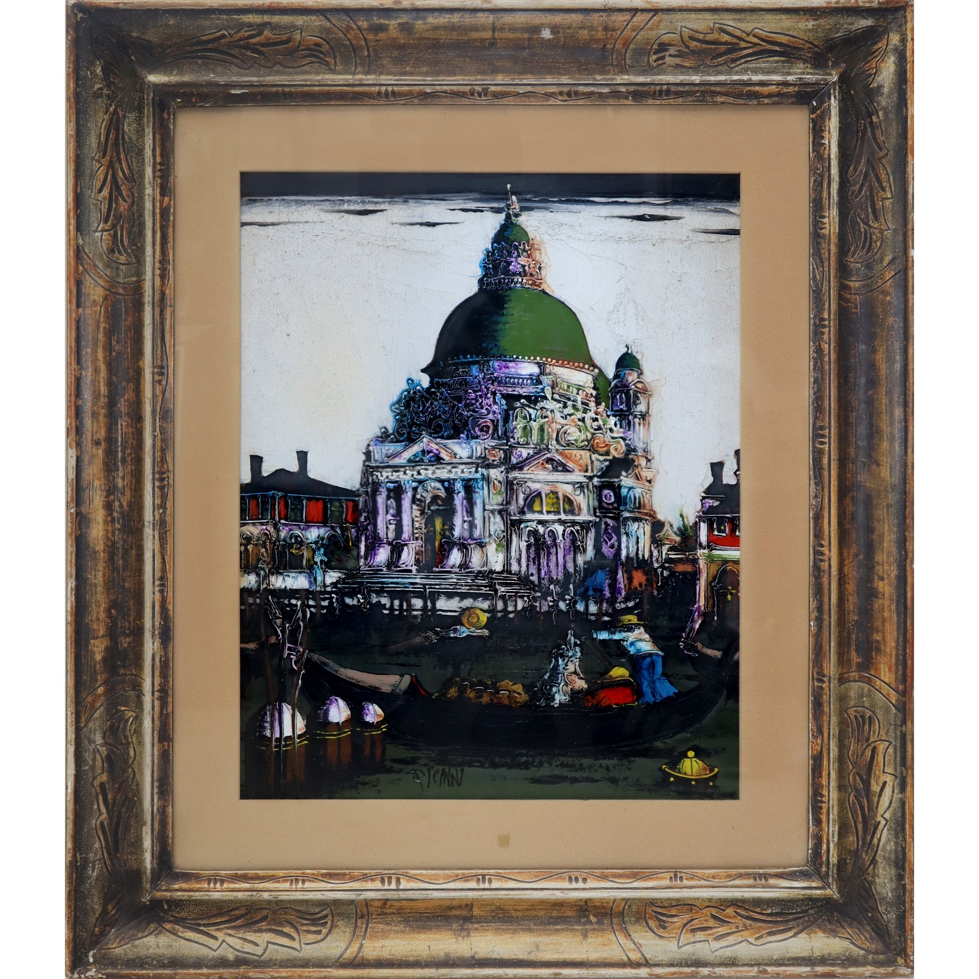 Gennaro Picinni (Bari 19/05/2023-2022) - Venezia, Basilica della Madonna della Salute cm 50x40, in cornice 75x65 Olio su tavoletta Sul retro timbro ed autentica della Galleria "Russo & Russo, Centro d'arte La Barcaccia, Roma.