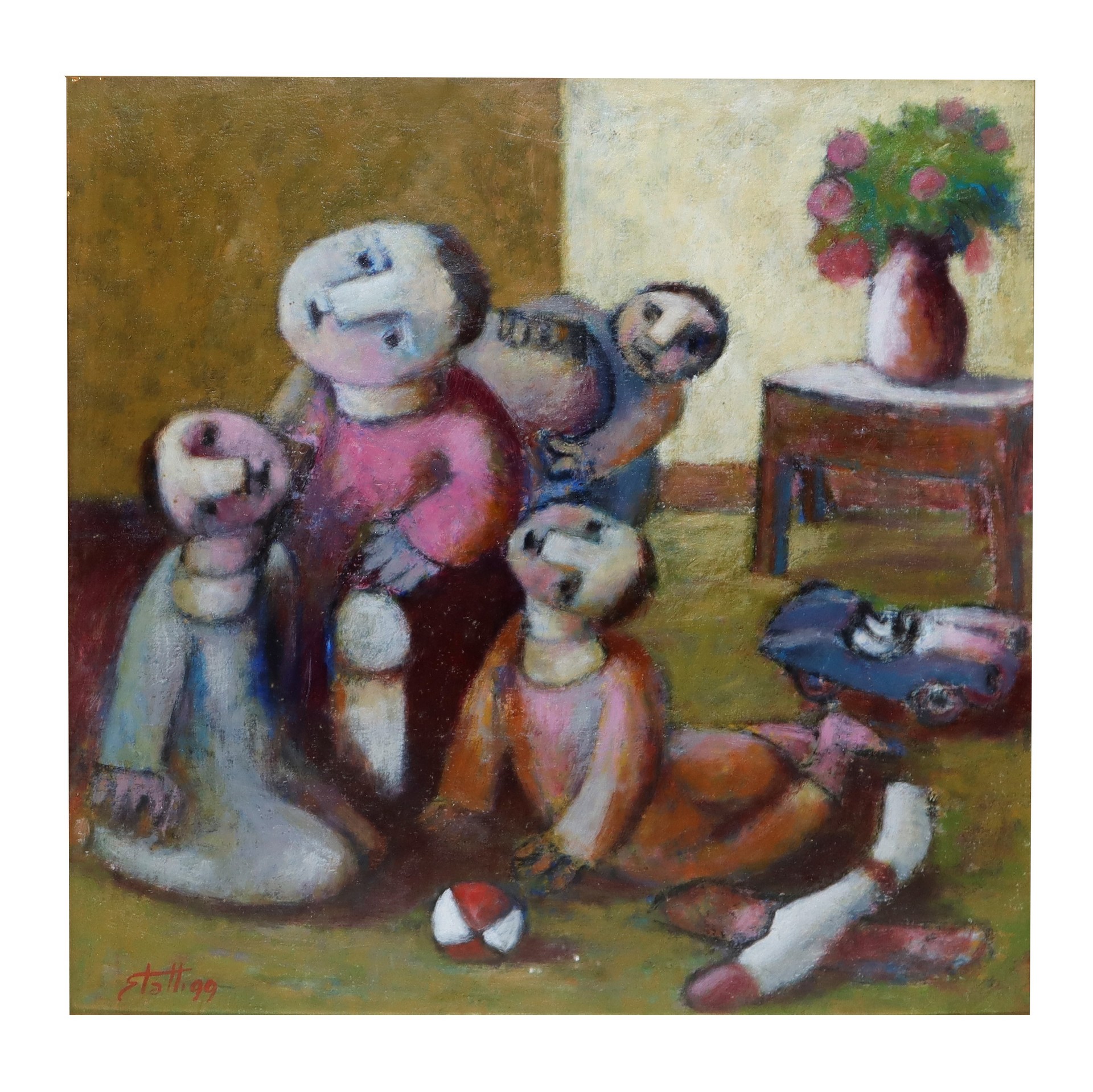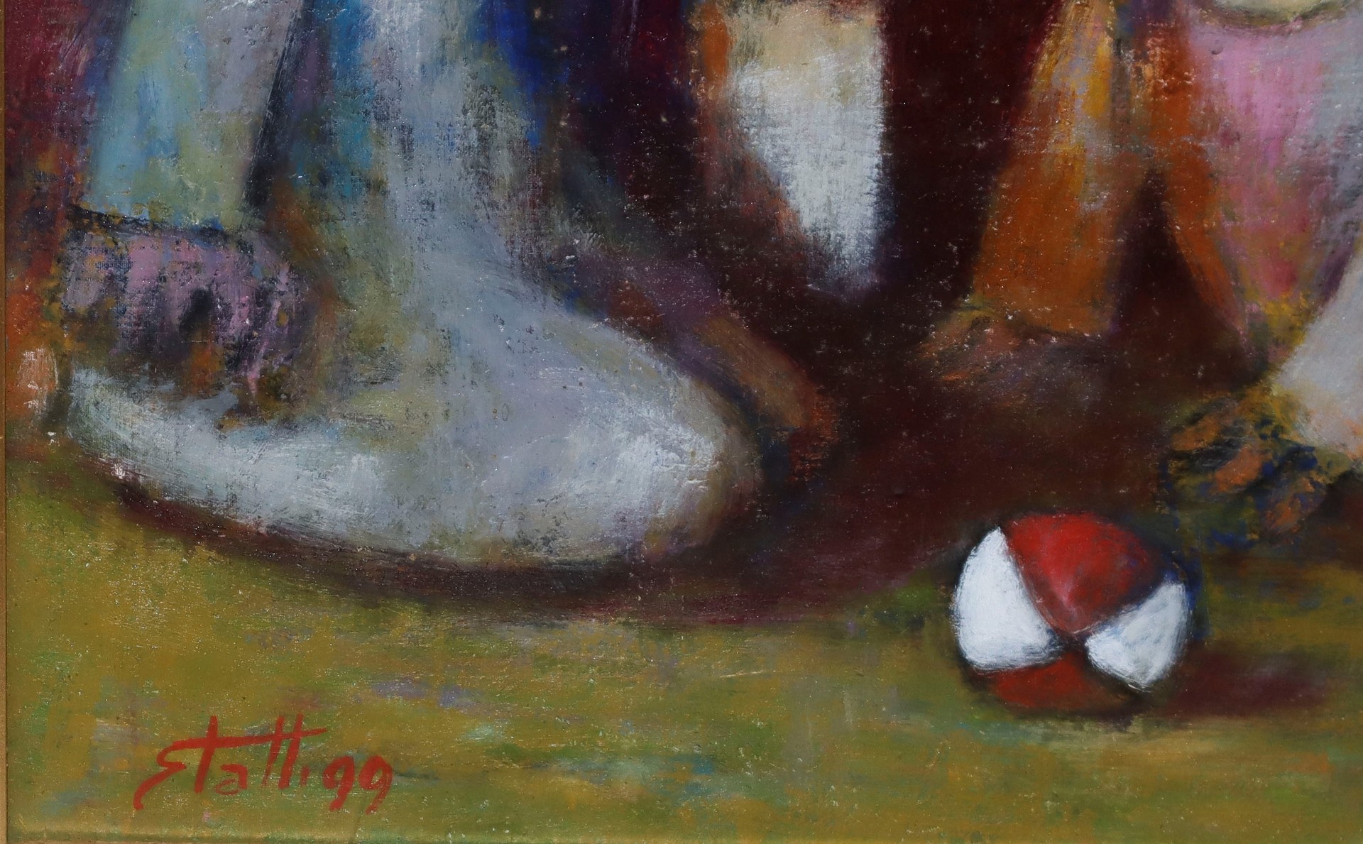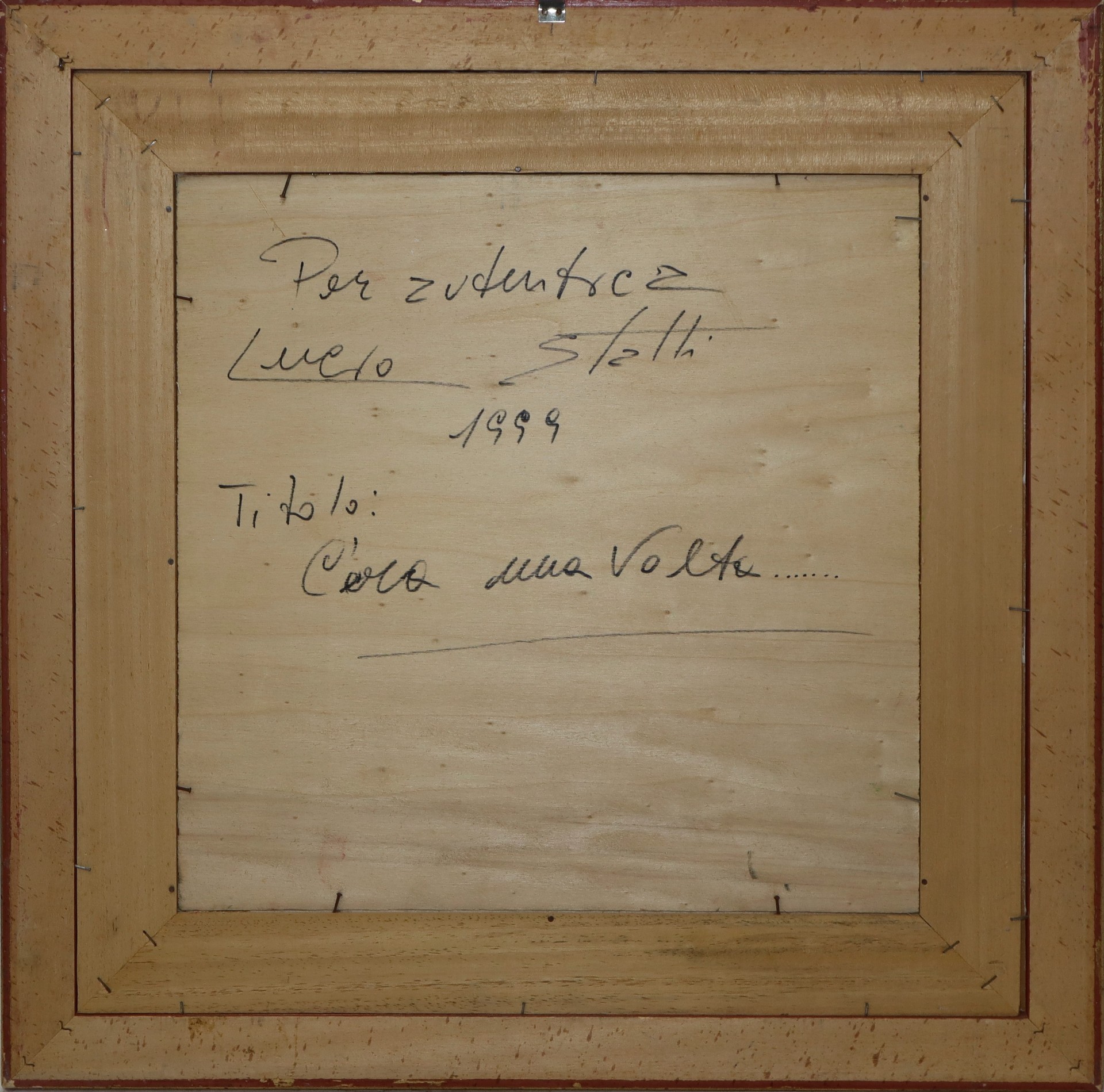 Lucio Statti (1947) - C'era una volta, 1999 cm 40x40, in cornice 60x60 Olio su tavola Firma e data sul fronte a sinistra e firma , titolo e anno al retro.
