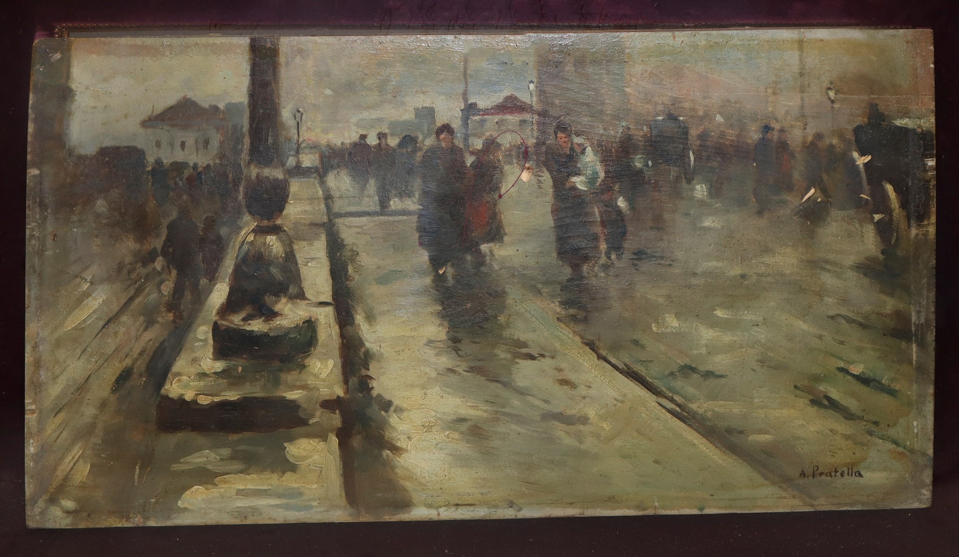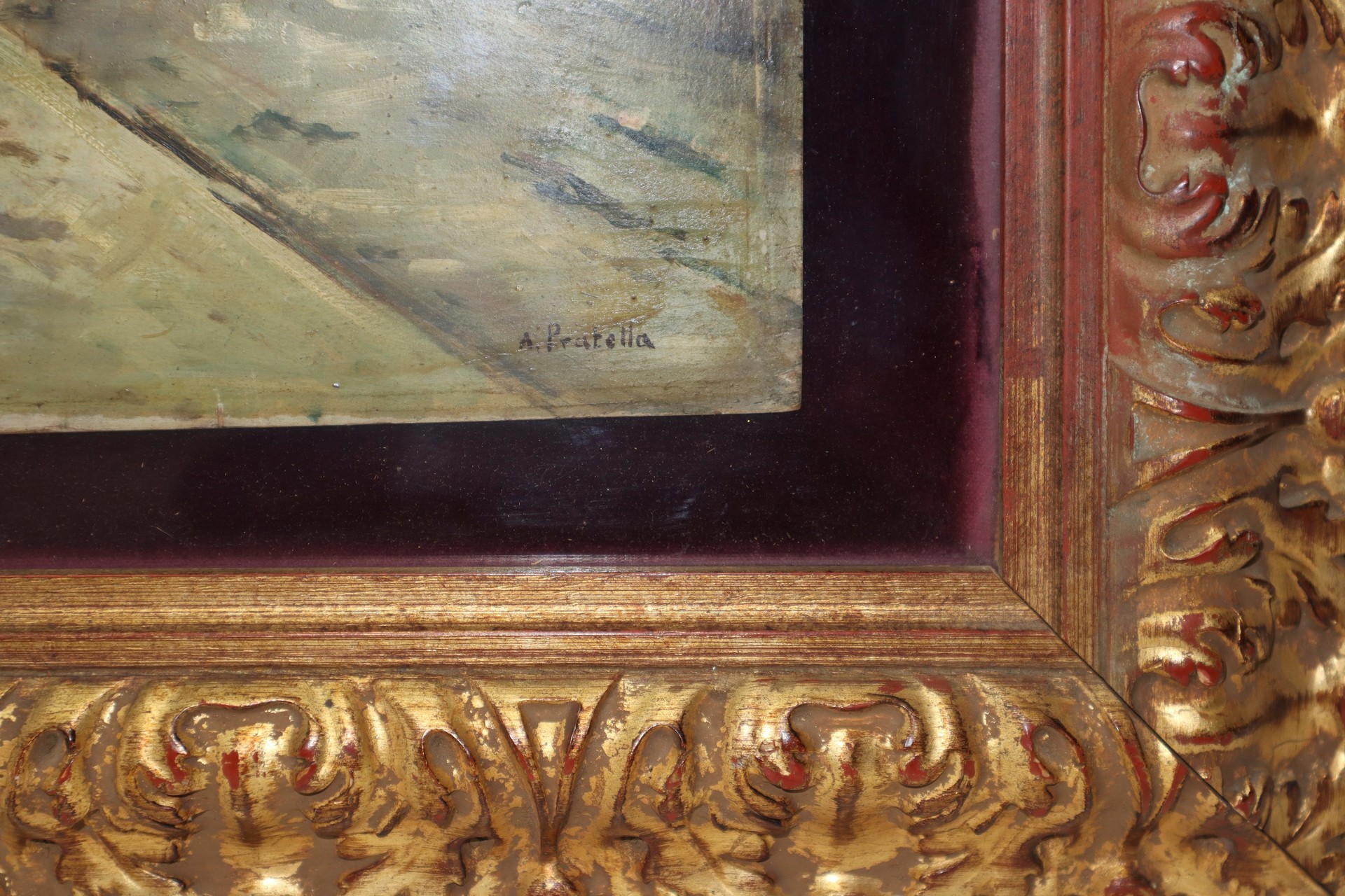 Attilio Pratella (Lugo Di Romagna 1856-Napoli 1949) - Strada napoletana Cm h 21x 40, in cornice h 47 x 66 Olio su tavoletta Firmato A. Pratella in basso a destra