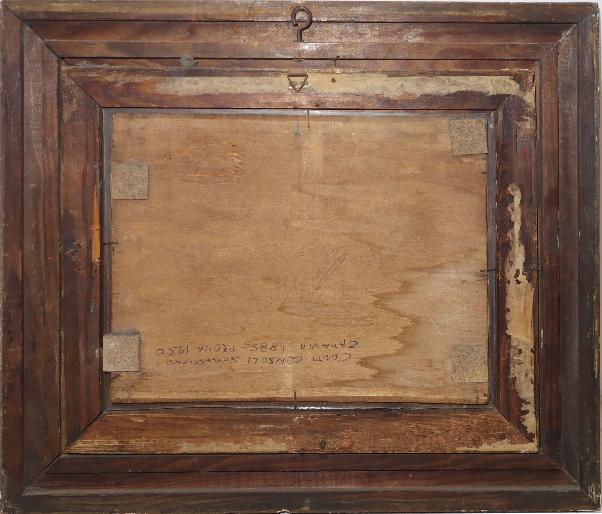 Sebastiano Conti Consoli (Catania 1885-Roma 1950) - Ritratto di donna con stola di pelliccia bianca cm 20x25 in corncie 36x41 Olio su tavola Firmato in basso a destra, sul retro a matita datato 10/10/1920 Belgio.