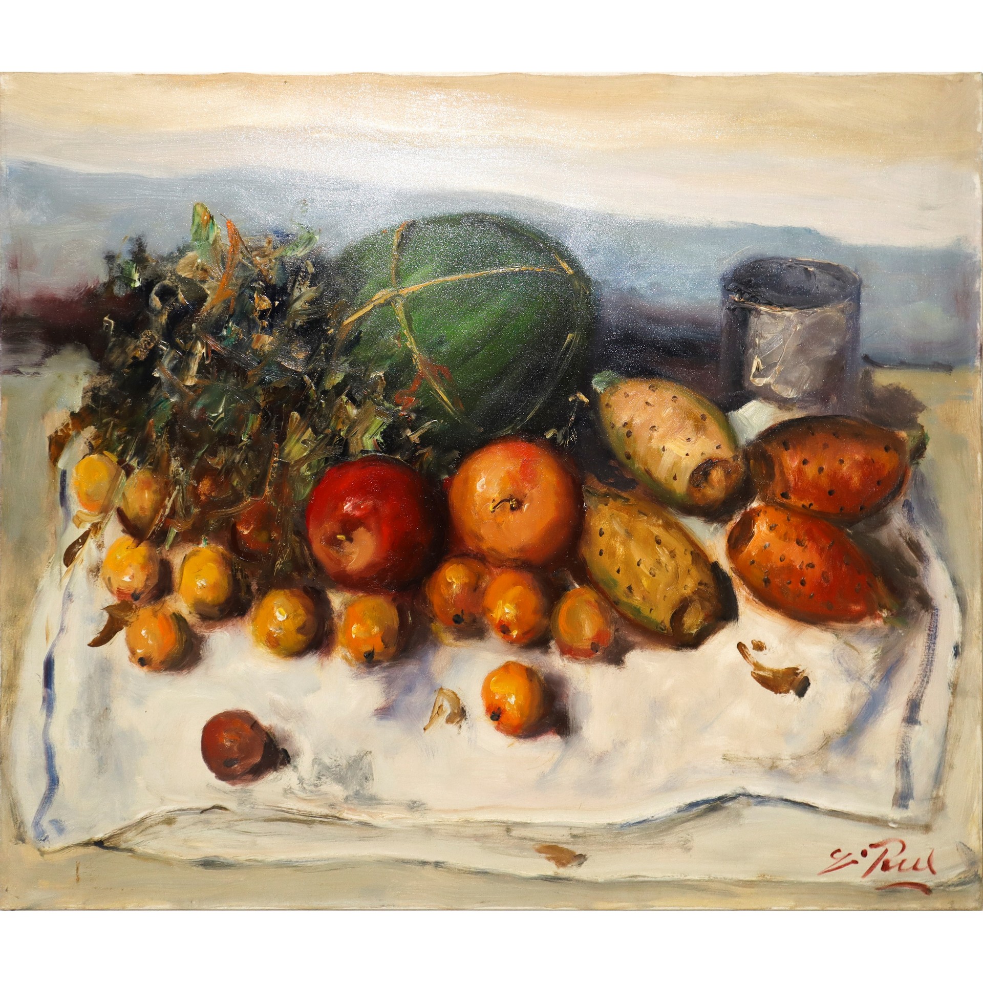 Giovanni Pane (Castellana Grotte 1928-Napoli 2010) - Frutti cm 50 x 60 Olio su tela Firma al fronte in basso a destra.