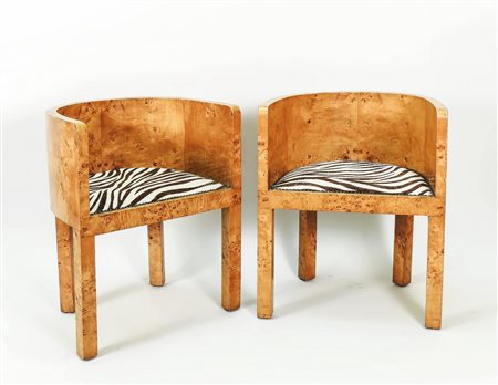 COPPIA DI POLTRONCINE A POZZETTO IN RADICA BIONDA - PAIR OF BRIAR TUB CHAIRS Stile Déco - Art Deco Style sedute rivestite in cavallino zebrato