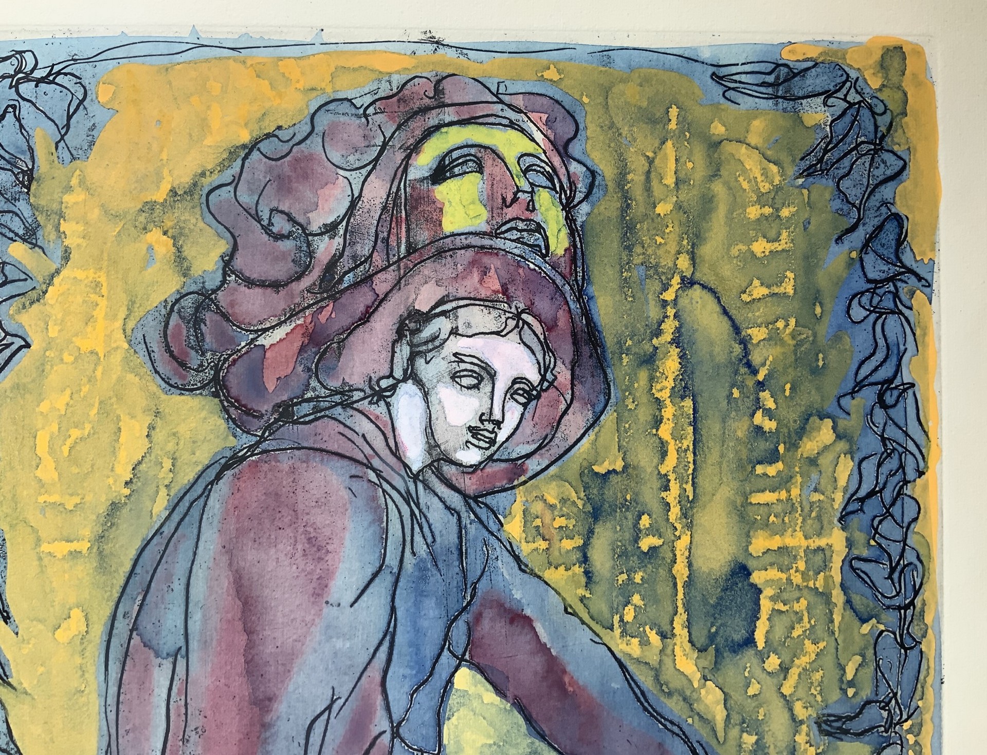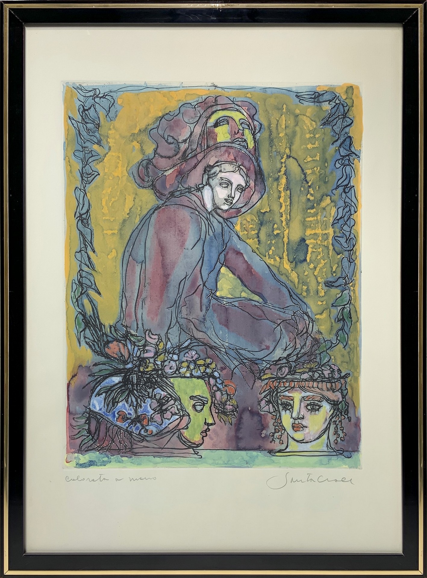 Antonio Santacroce (Rosolini 1945) - Personaggi 70x50 cm Litografia su carta colorata a mano Firmata in basso a destra Santacroce