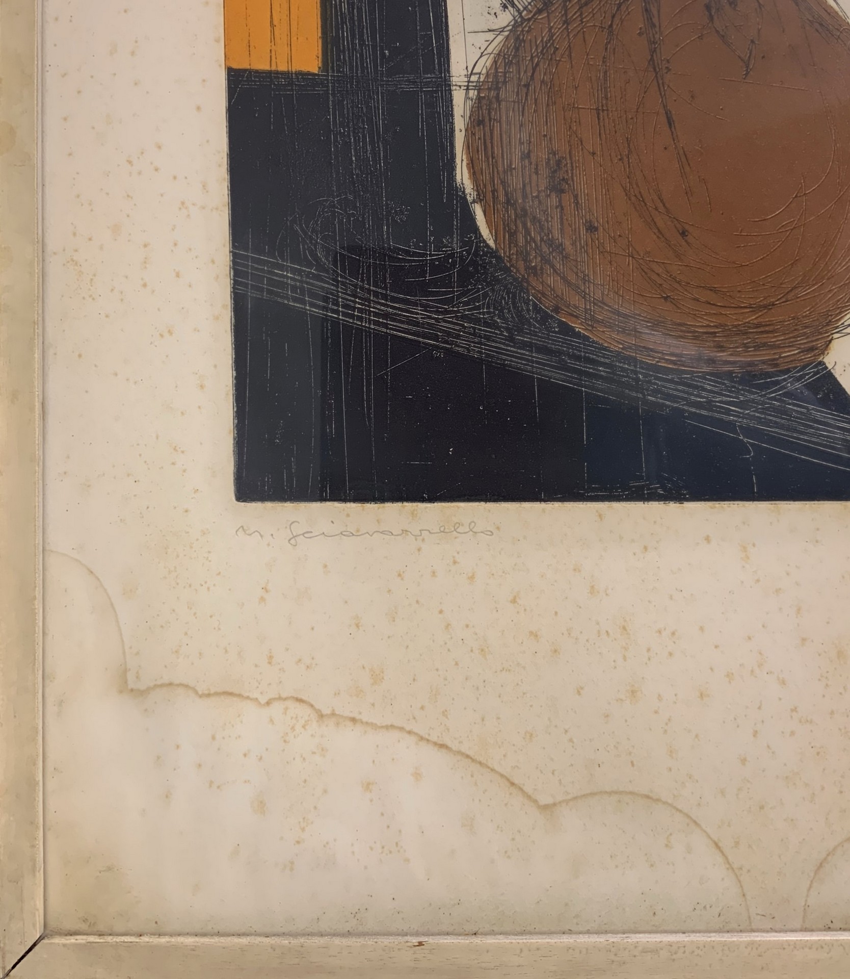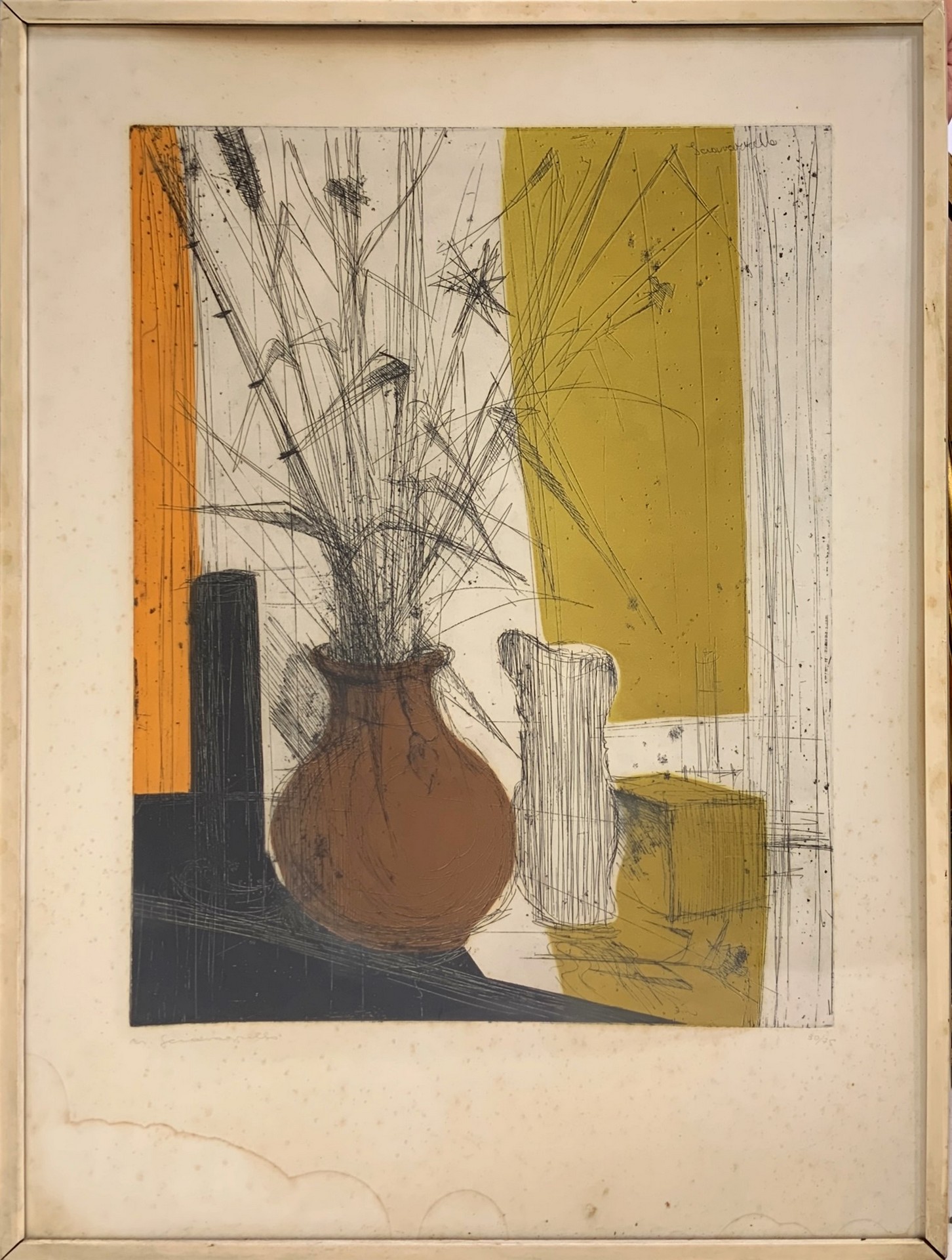 Nunzio Sciavarello (Bronte 1918-Catania 2013) - Natura morta di vasi Cm 63x49, in cornice cm 90x66 Litografia Firmata in basso a sinistra 30/75.