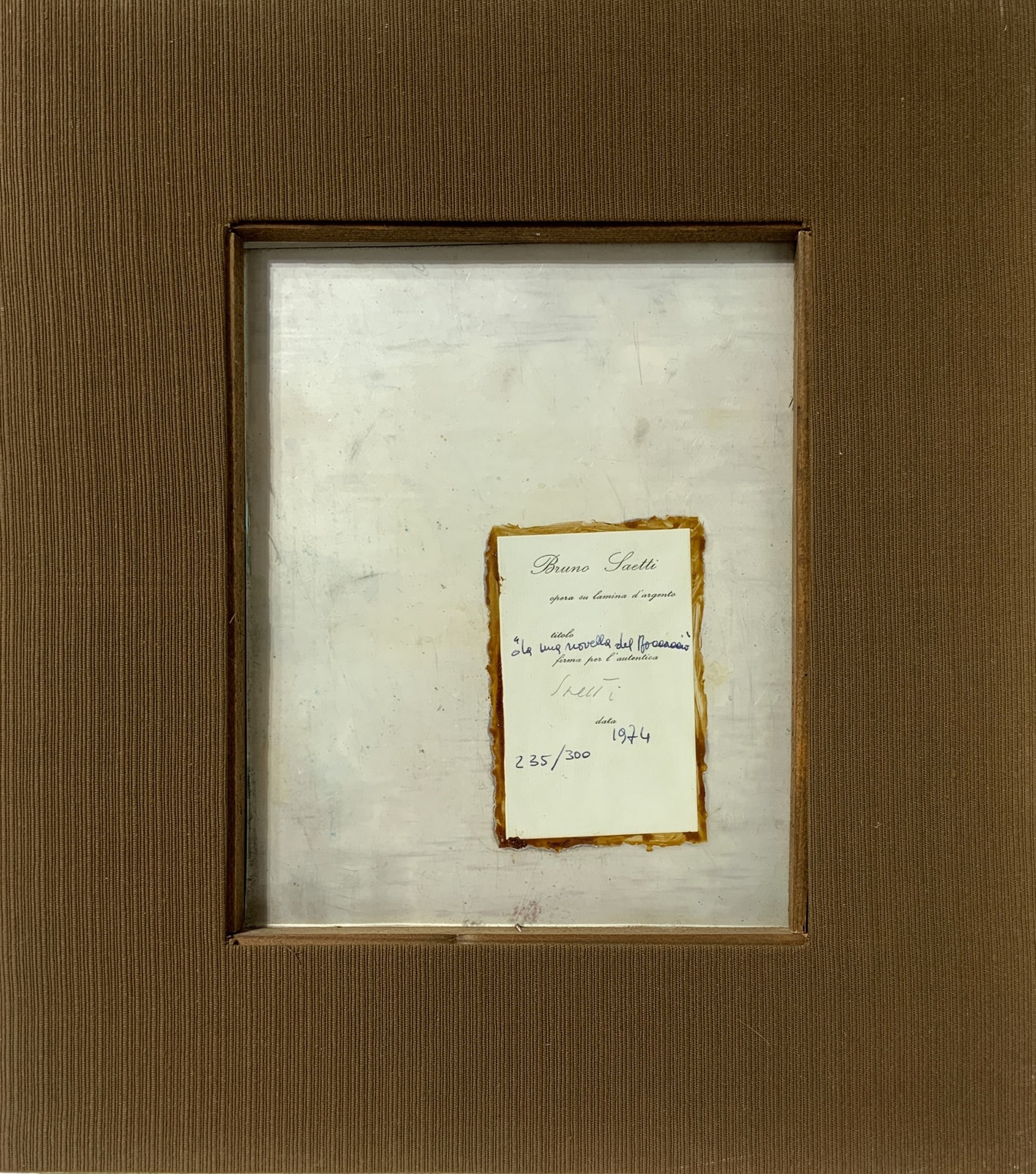Bruno Saetti (Bologna 21/02/1902-Bologna 10/07/1984) - “Da una Novella del Boccaccio” , 1974 Cm 26x21, in cornice 41x36 Litografia su lamina d’argento N 235/300.