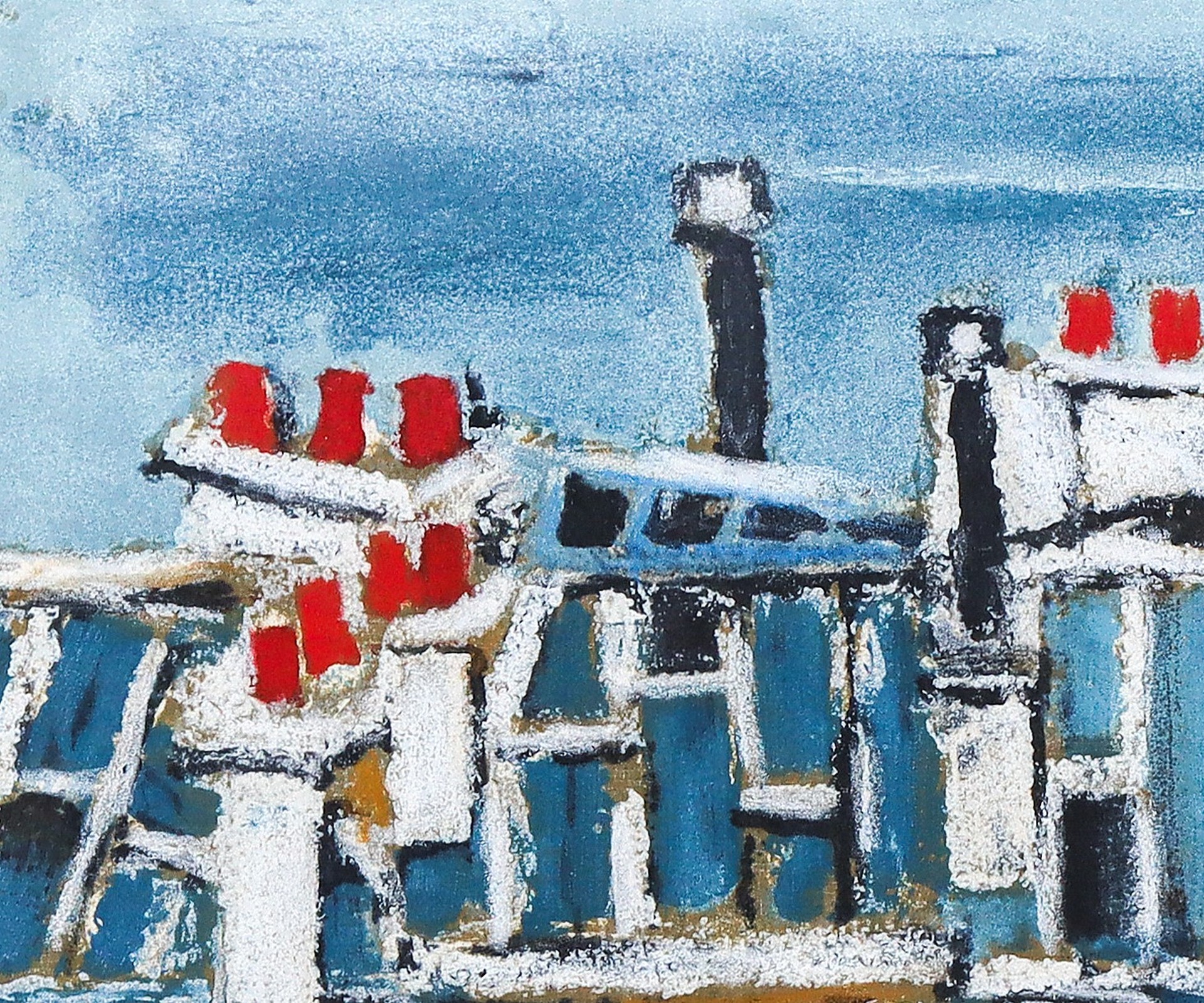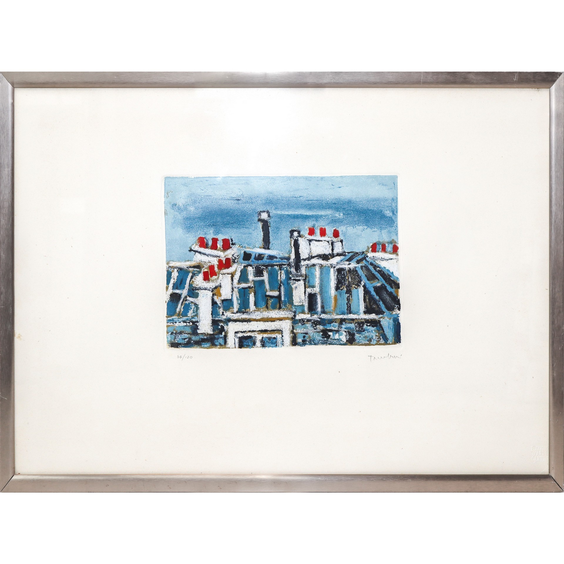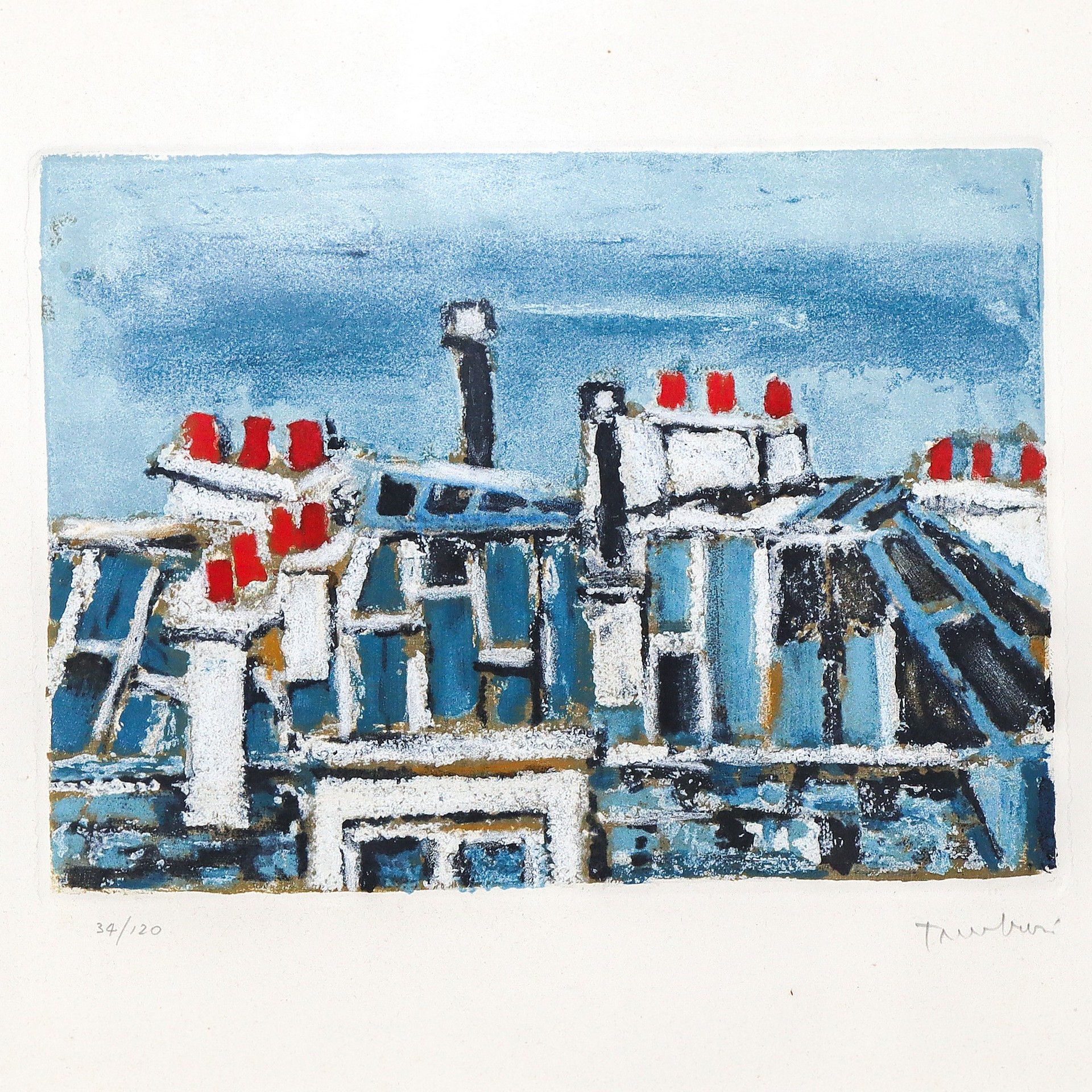 Case con camini Cm 50 x 70 Litografia Firmata Tamburi, 34/120