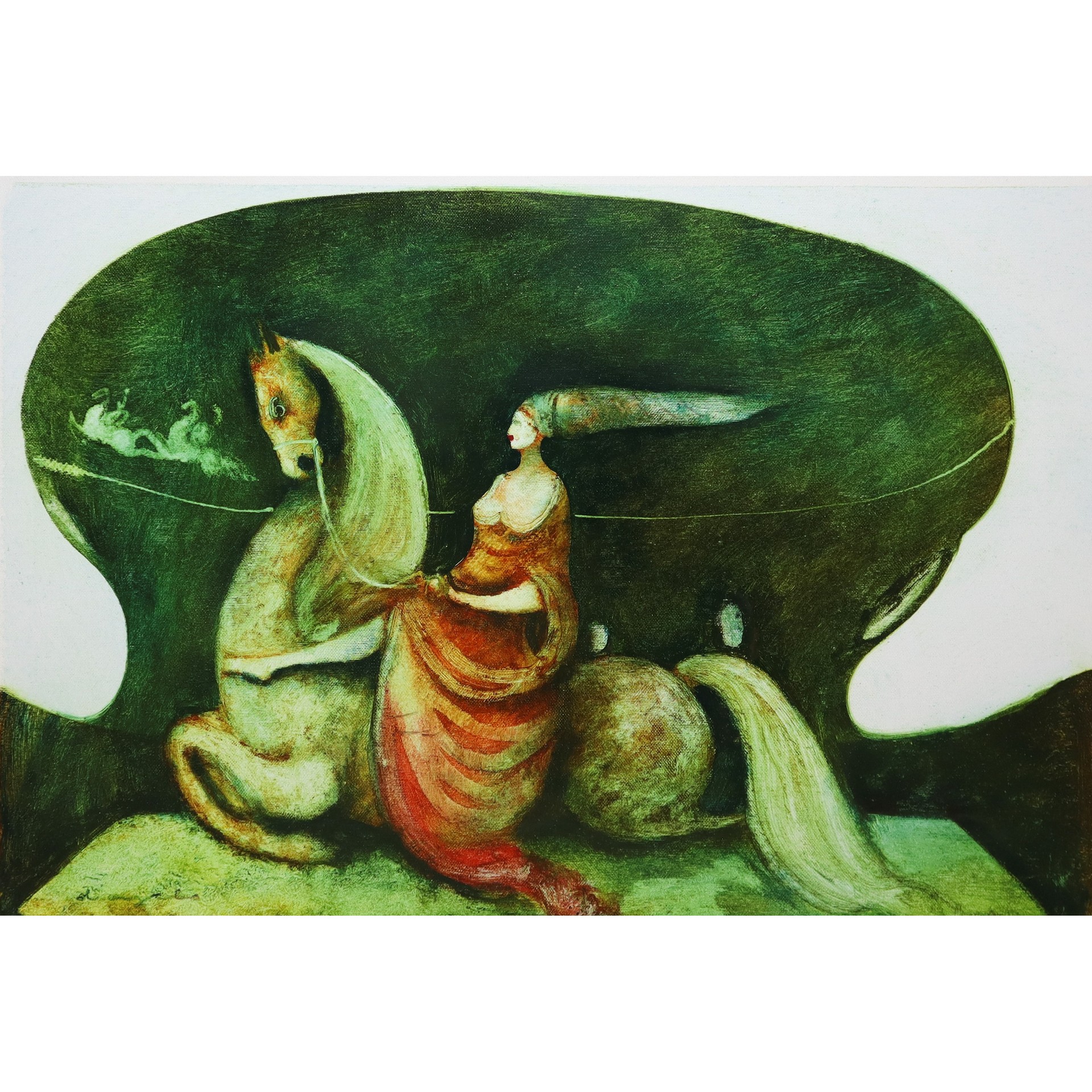Cesare D'Angelo (Catania 1940-2006) - Donna a cavallo nei toni del verde
