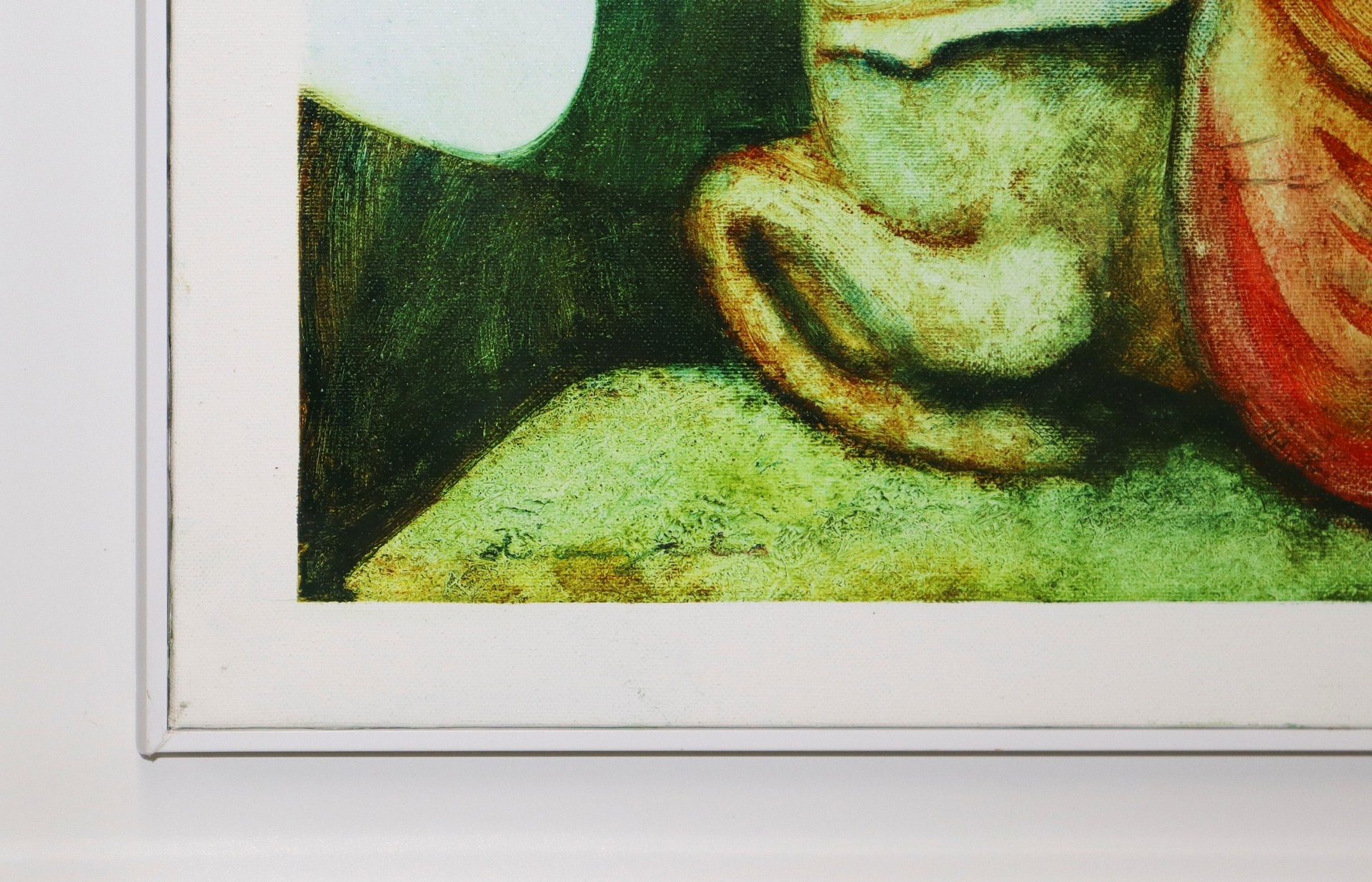 Cesare D'Angelo (Catania 1940-2006) - Donna a cavallo nei toni del verde cm 51,5 x 72 in cornice 75,5 x 86 cm Olio su tela
