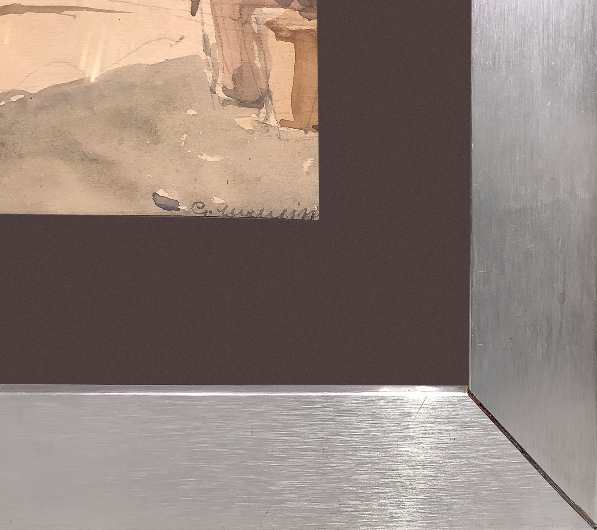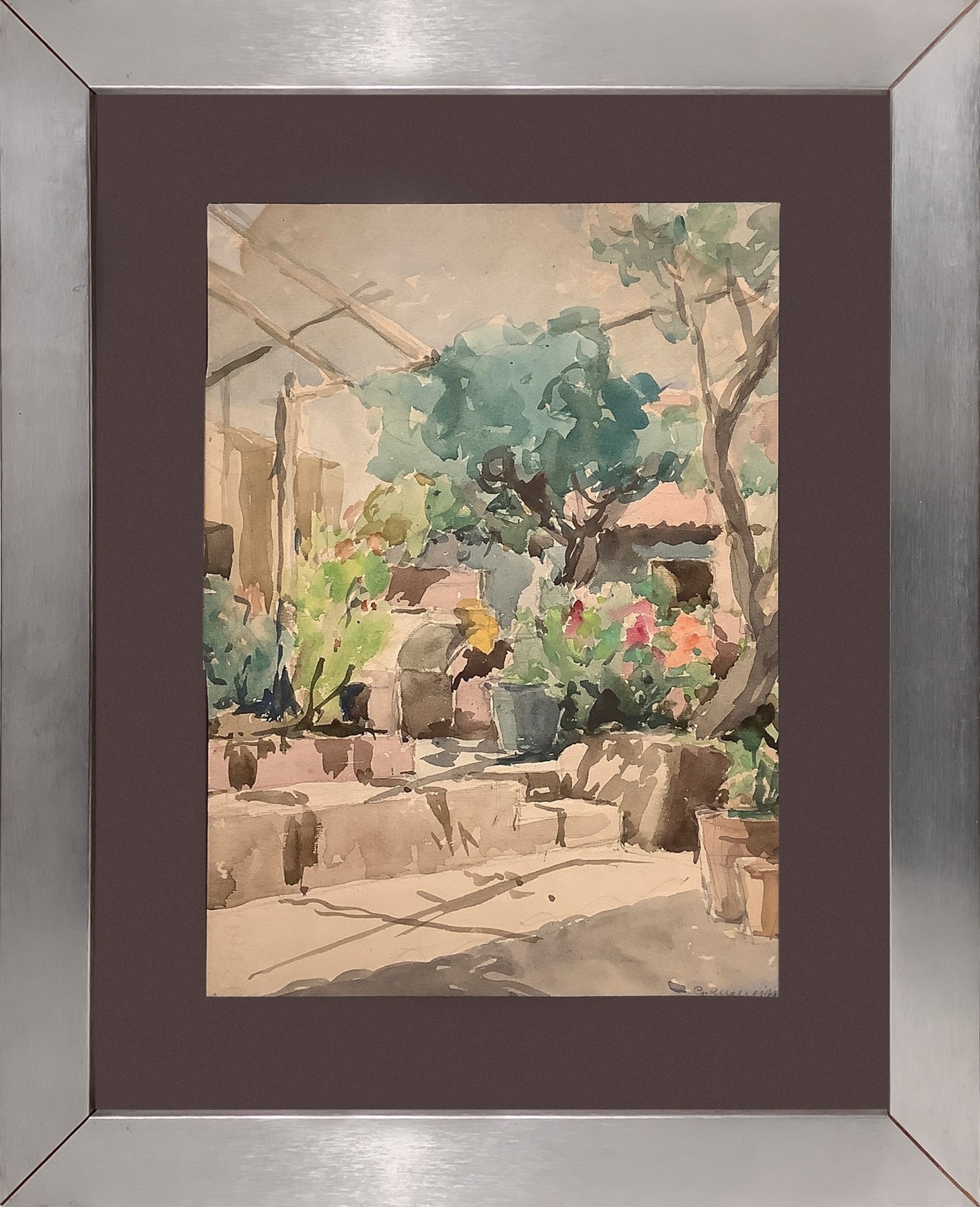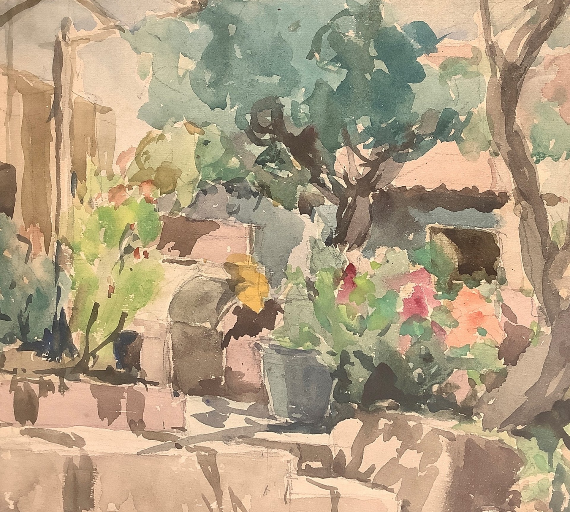 Terrazzo con vasi con fiori cm 32x23 Acquarello su carta Firmato G. Mancini.