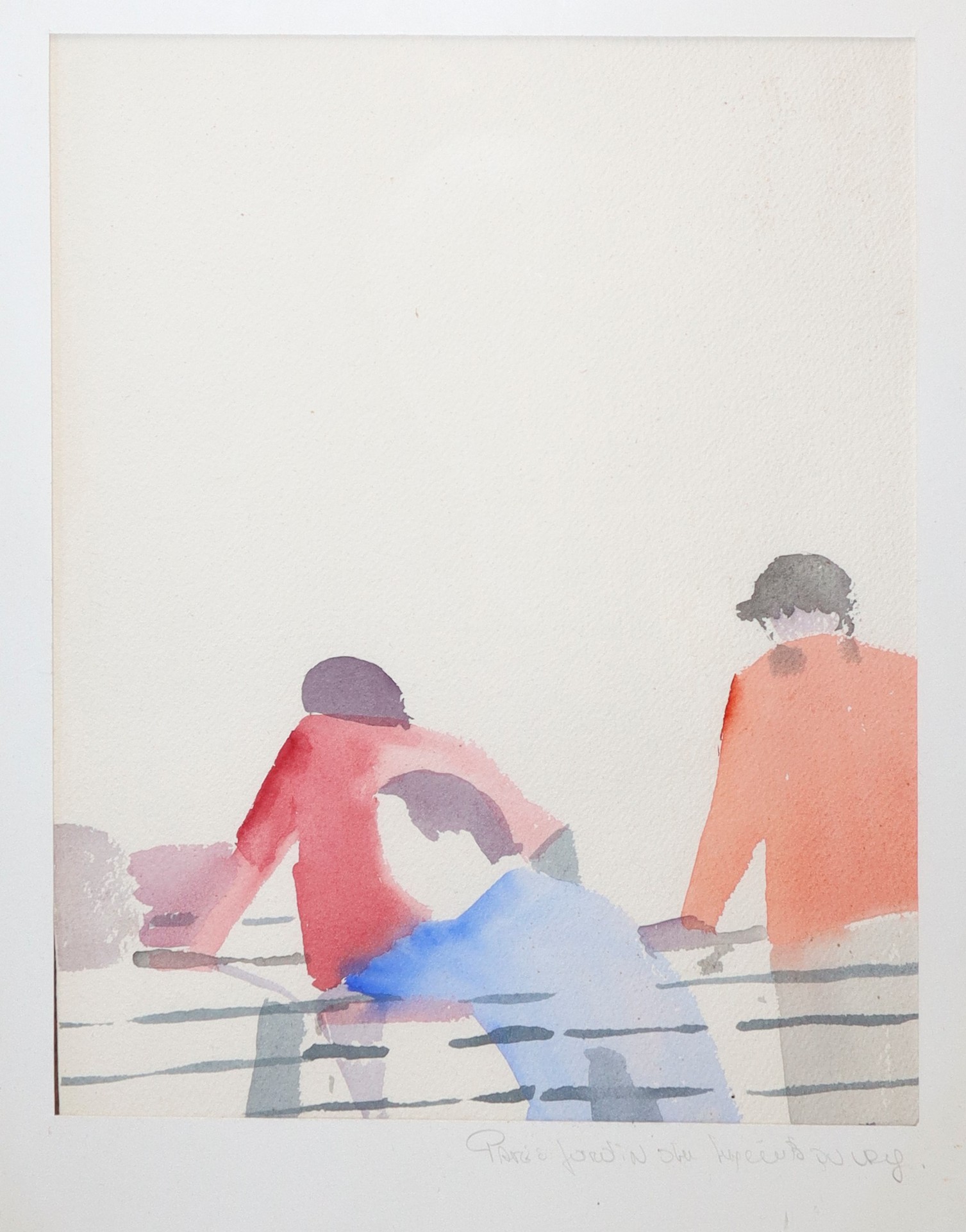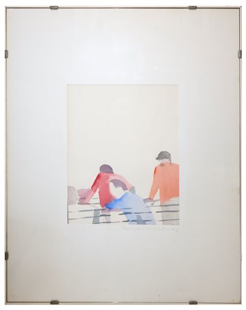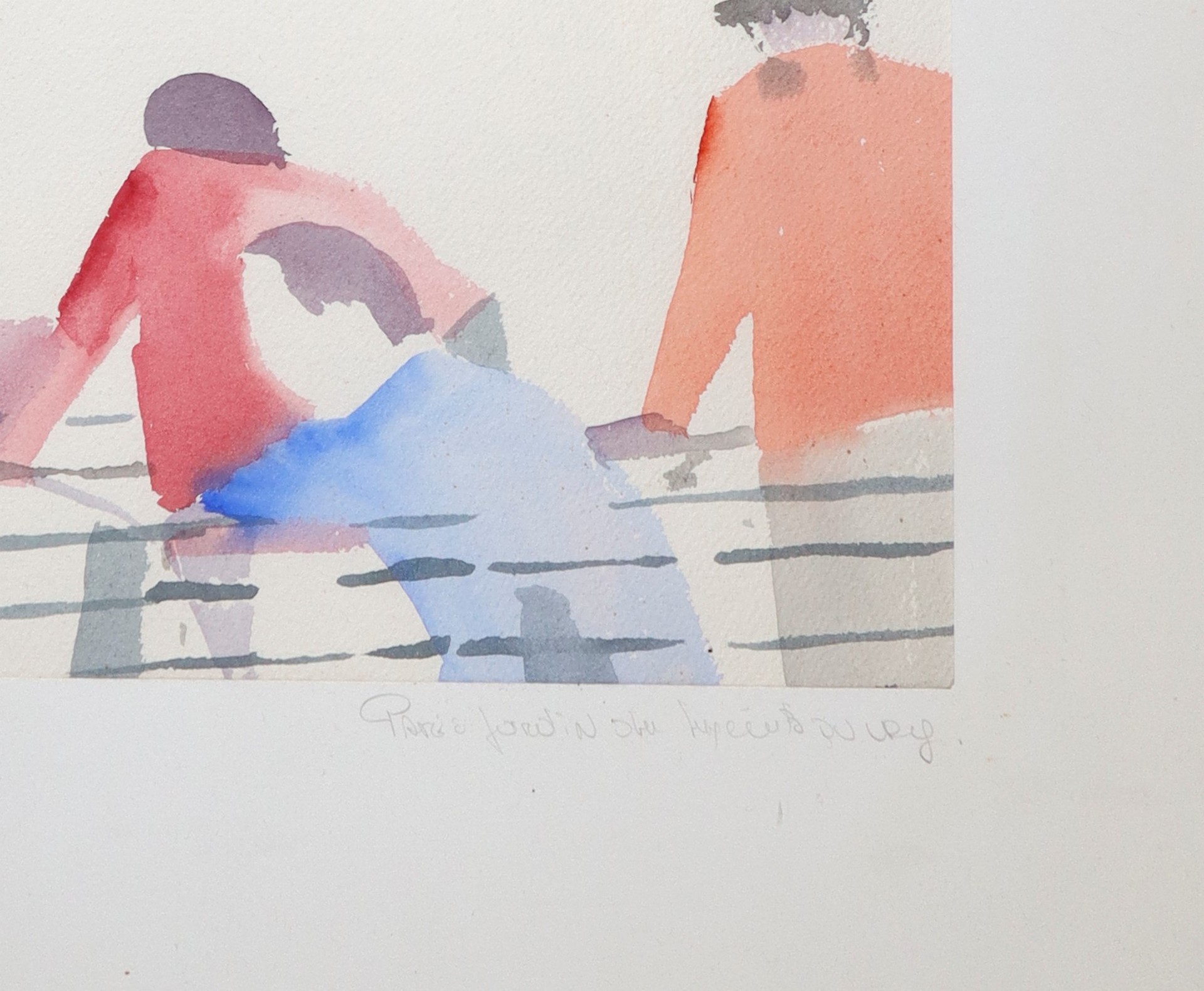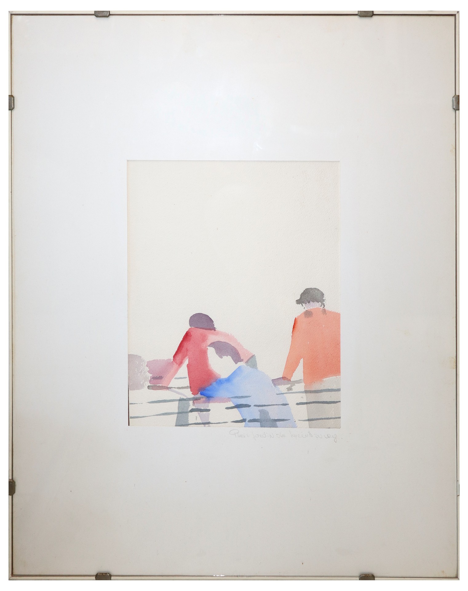 Tre personaggi cm 30 x 24, in cornice 65 x 50 Acquerello su carta Firma illegibile in basso a destra.