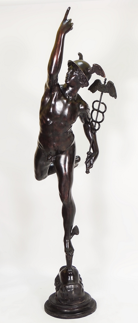 MERCURIO ALATO DA GIAMBOLOGNA - MERCURY FROM GIAMBOLOGNA scultura in bronzo - Bronze group, su base in marmo h cm 190
