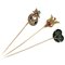 Lotto composto da 3 spille da cravatta in oro di antica fattura una raffigurante testa di civetta una stella a 5 punte con piccolo smeraldo e una raffigurante un uccello con ali spiegate.