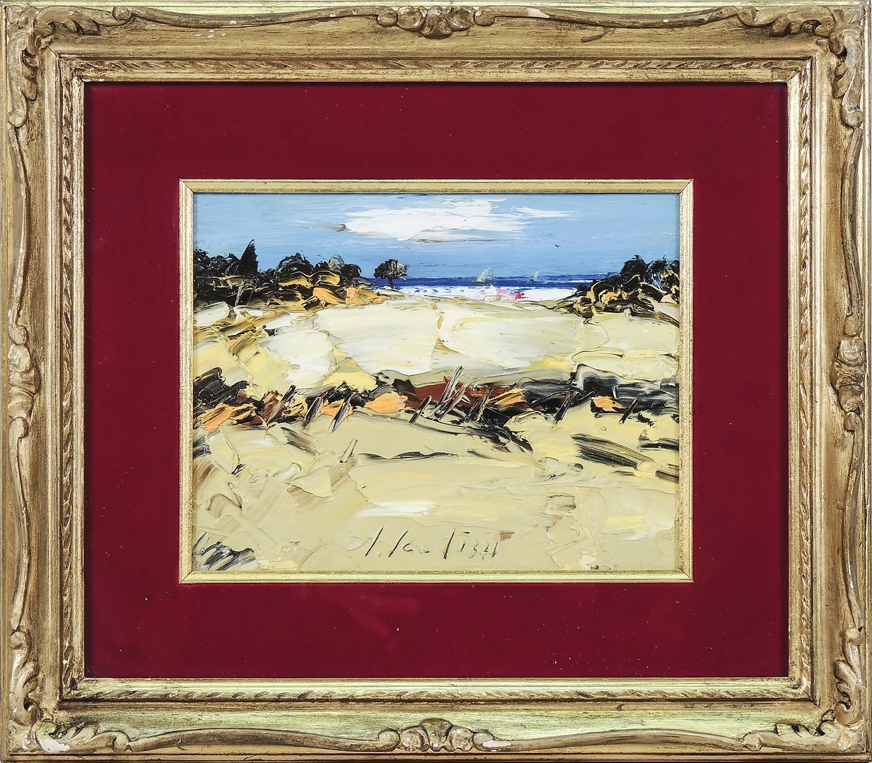 SERGIO SCATIZZI (1918-2009) Paesaggio marino - Seascape olio su tavoletta - oil on panel, firmato, firmato al verso, in cornice cm 22x28 Corredato di autentica dell'autore su fotografia - With Author's authentication on photo