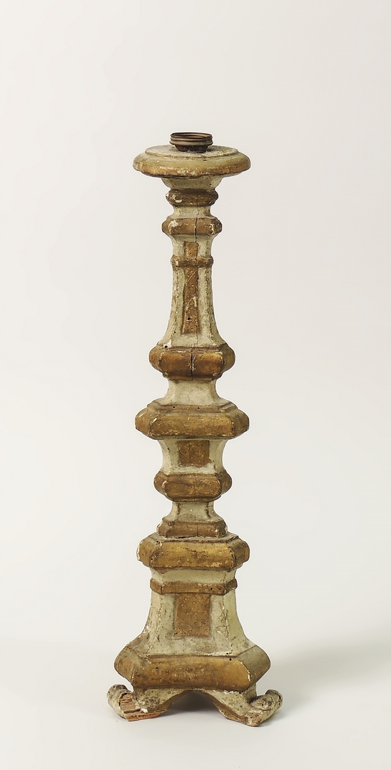TORCIERA IN LEGNO INTAGLIATO, LACCATO E DORATO - LACQUERED AND GILTWOOD PRICKET Toscana, XVIII secolo - Tuscany, 18th Century h cm 59