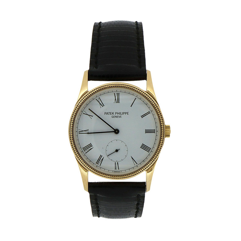 Patek Philippe finissimo orologio unisex modello 'Calatrava' in oro giallo ref. 3796/D lunetta Clou de Geneve quadrante in smalto bianco e indici a numeri romani piccoli secondi al 6 animato da movimento meccanico a carica manuale calibro 215 ps.