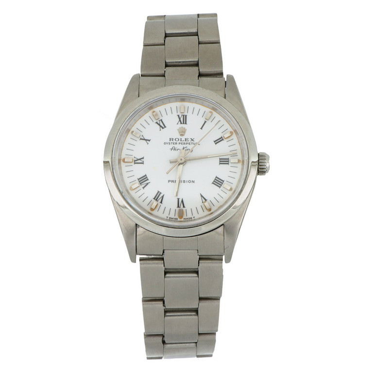 Rolex. modello AirKing in acciaio con cinturino Oyster e quadrante bianco in smalto numeri romani e indici in oro bianco.