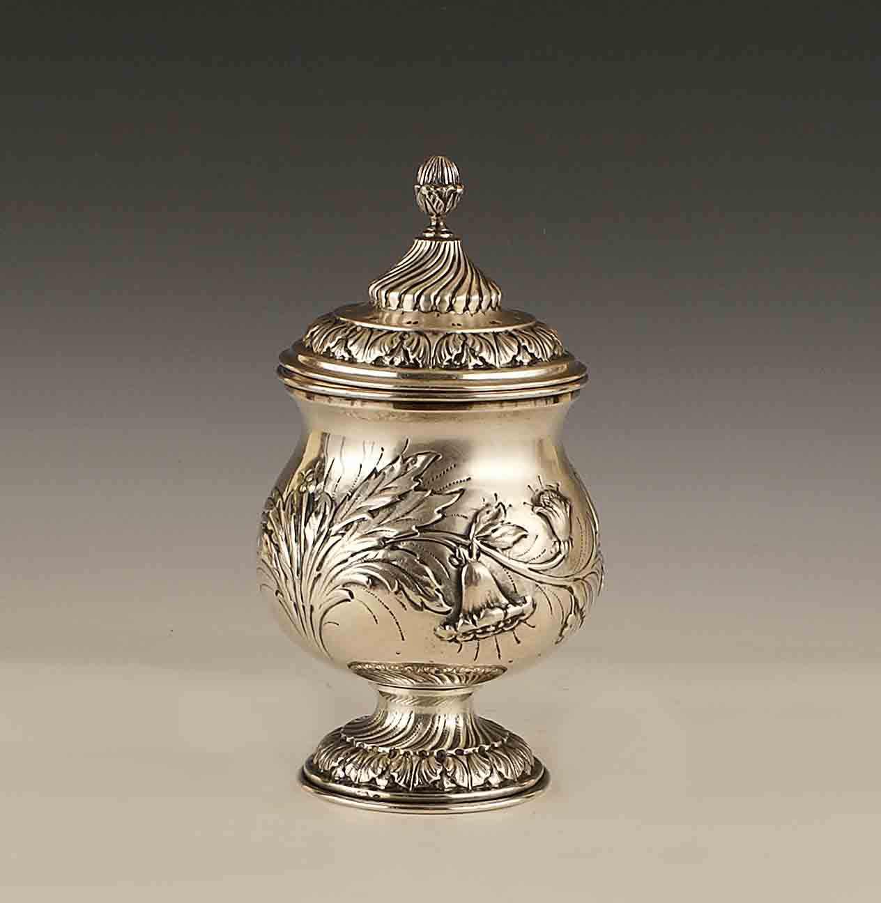 Lotto 615 | Cachepot in argento sbalzato ed inciso a motivo floreale, gr. 482, h. cm. 25.