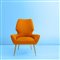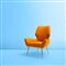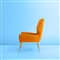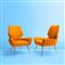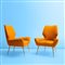 Coppia di poltroncine imbottite con tessuto originale color senape, gambe in ottone.