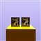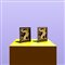 Coppia di fermalibri in metallo con decoro a serigrafia.